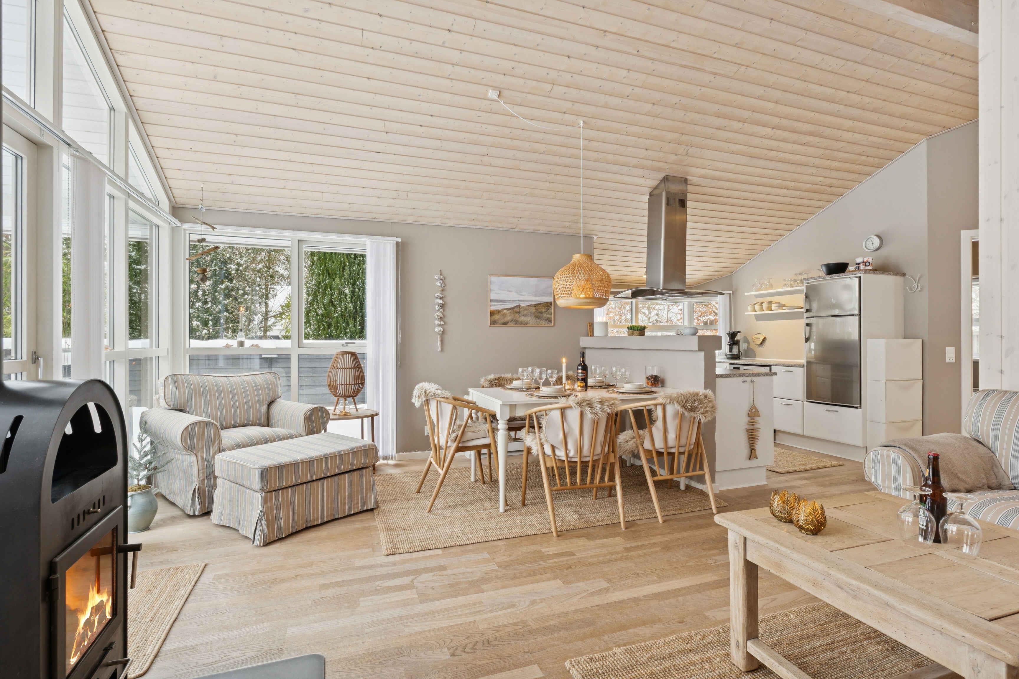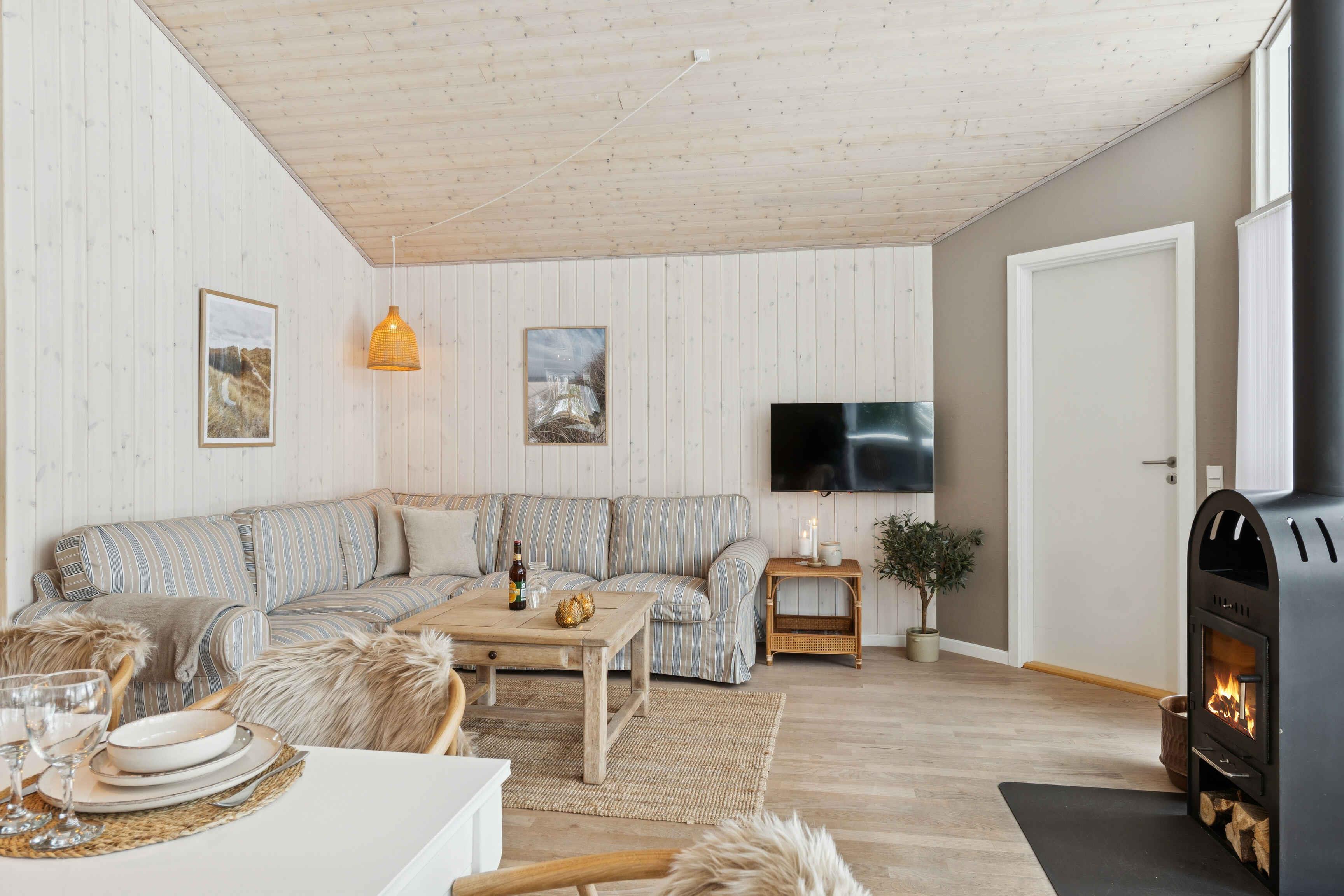 Well-kept 70 m² holiday home with 3 bedrooms and 5 beds. Cozy holiday feel with wooden panels and wood-burning stove. Covered terrace and annex. Close to beach and nature in Northern Jutland.