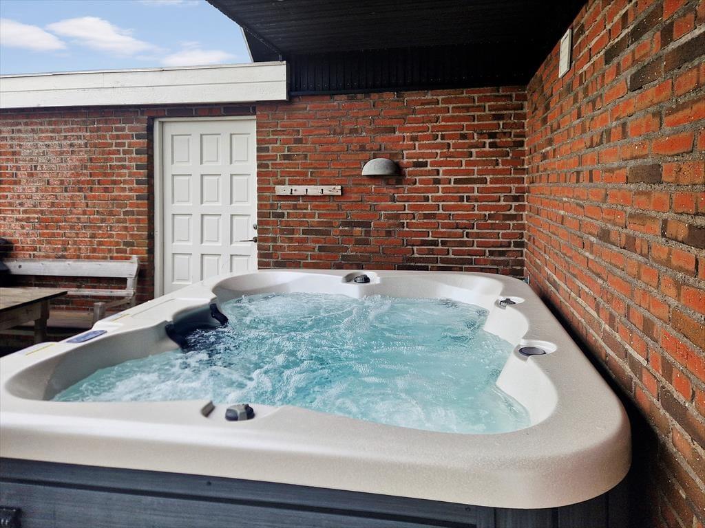 Draußen eröffnet sich dir ein herrlicher, abgeschiedener Hofbereich, in dem du entspannen und die Ruhe auf dich wirken lassen kannst. Die geschlossene Terrasse sorgt für Privatsphäre und bildet den Rahmen für gemütliche Stunden in der Sonne oder beim Grillen. Das Highlight ist jedoch zweifellos der Außen-Whirlpool, in dem du im warmen Wasser versinken und die sternenklaren Nächte genießen oder tagsüber eine erfrischende Außendusche nehmen kannst. Hier ist alles darauf ausgerichtet, das Leben im Freien zu genießen und Erinnerungen zu schaffen, die lange nach dem Urlaub bleiben werden.