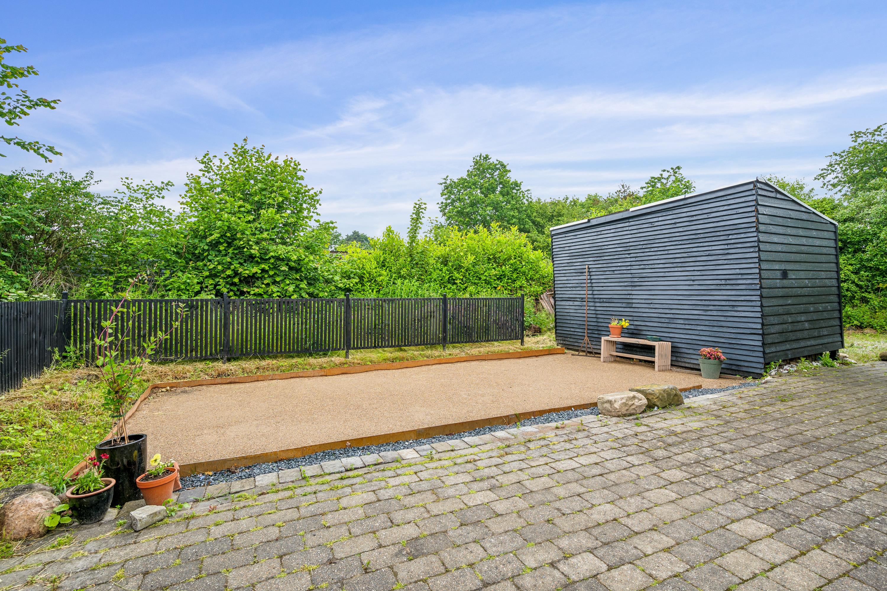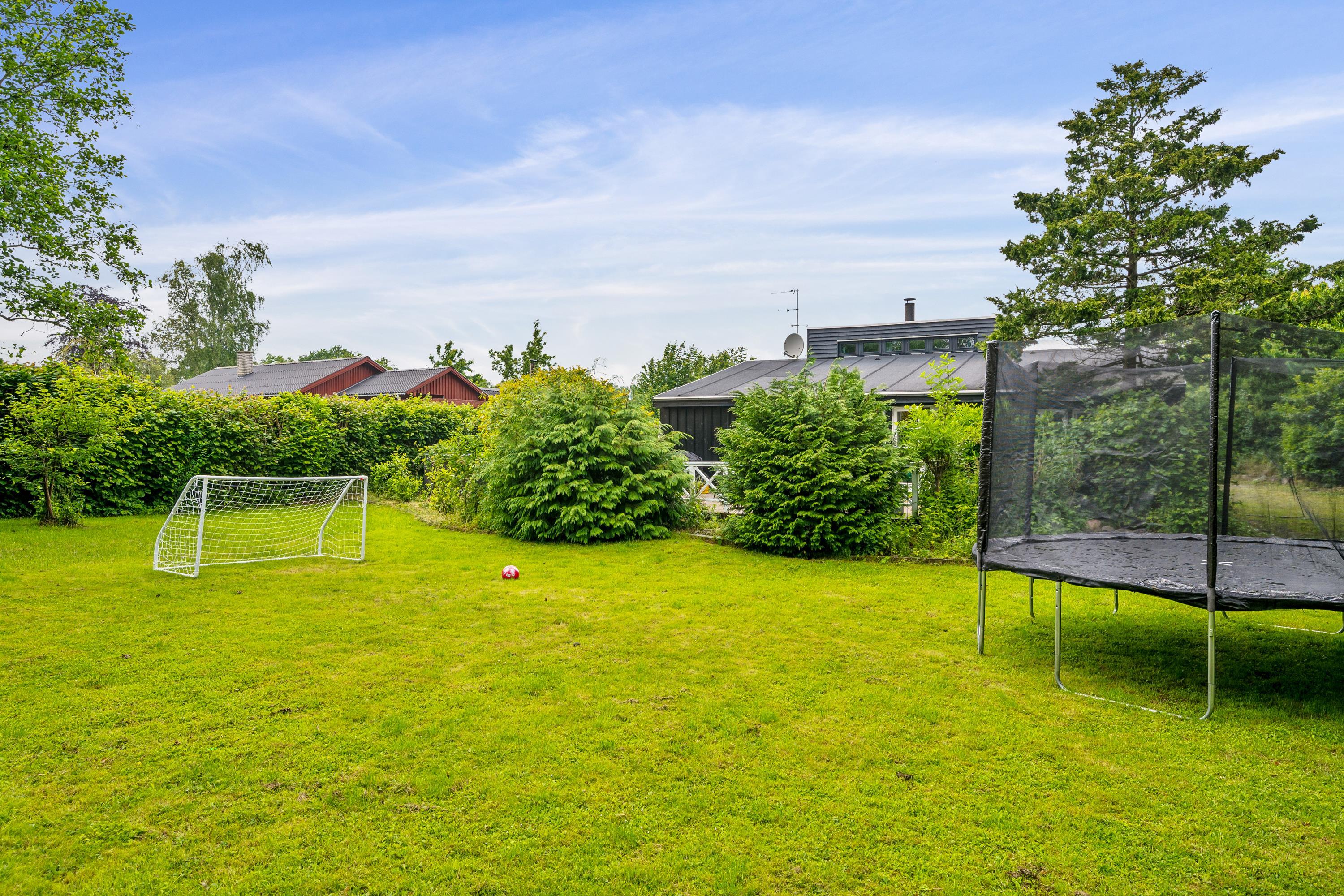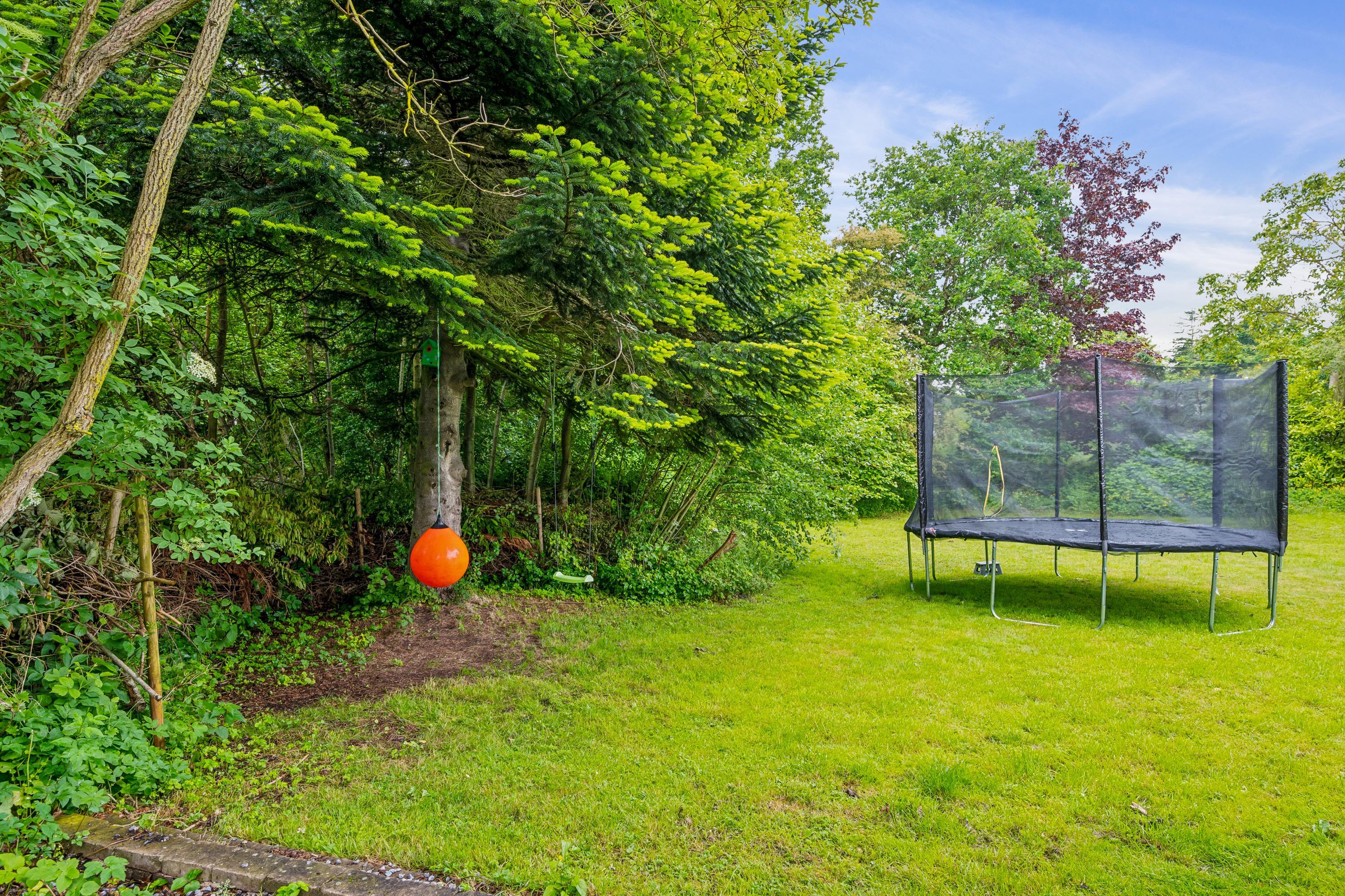 The house sits on a lovely plot with a large lawn, perfect for outdoor play and activities. Here you’ll find a wilderness hot tub, trampoline, swings, and a fine pétanque court – ideal for spending quality time outdoors.