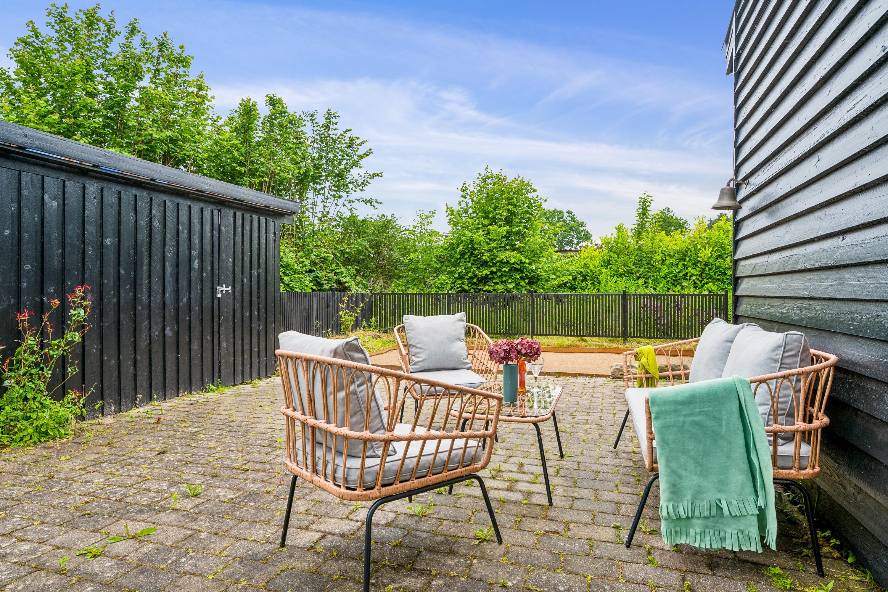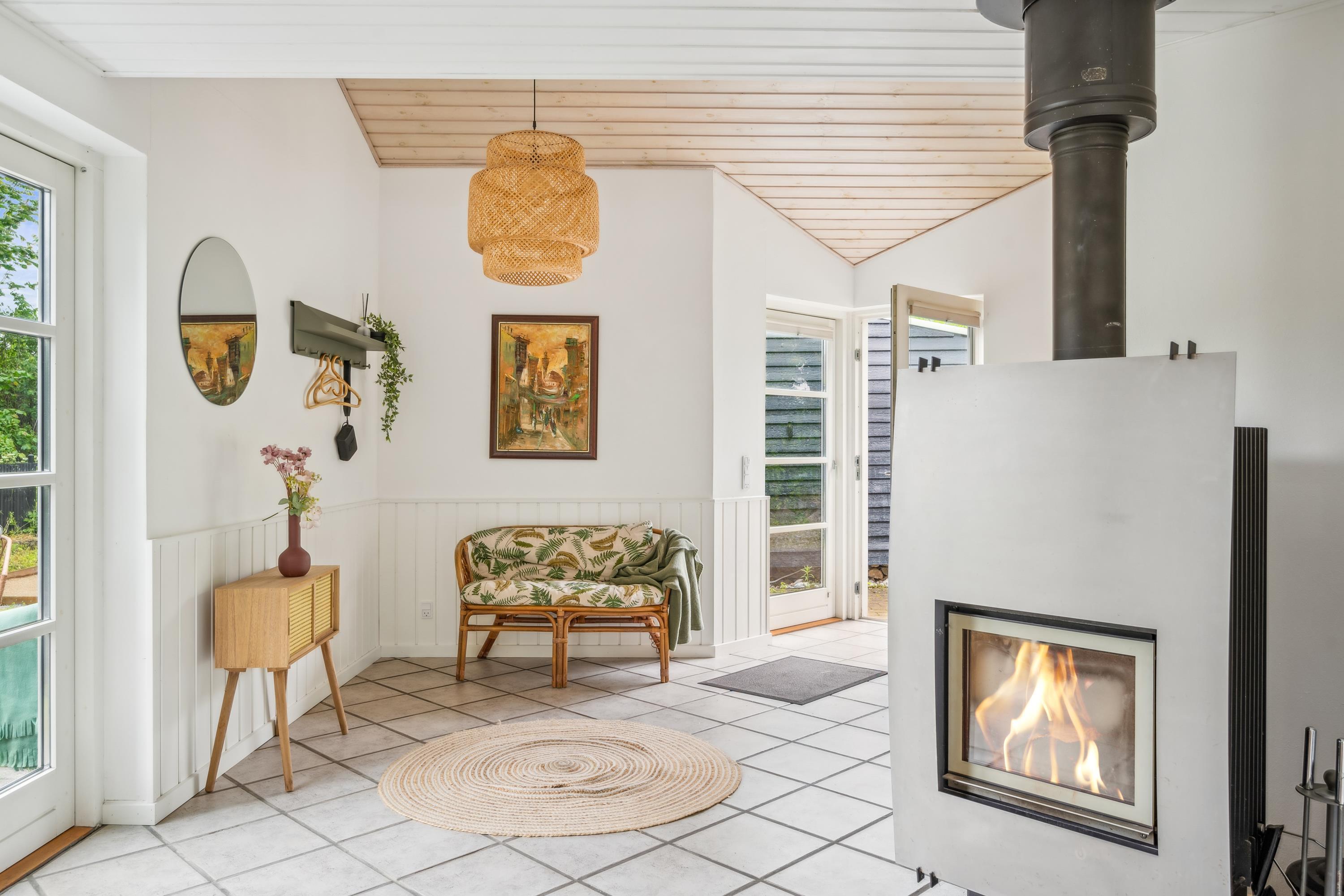Not far from Ebeltoft and within walking distance of a lovely sandy beach, you'll find this charming holiday home situated on a beautiful and relatively private plot. Inside, there is a cosy and well-furnished living room with a nice dining area. From the living room, you have access to a delightful terrace with garden furniture. The stylish kitchen from 2024 includes a dishwasher, and the bathroom is newly renovated with a shower and underfloor heating.