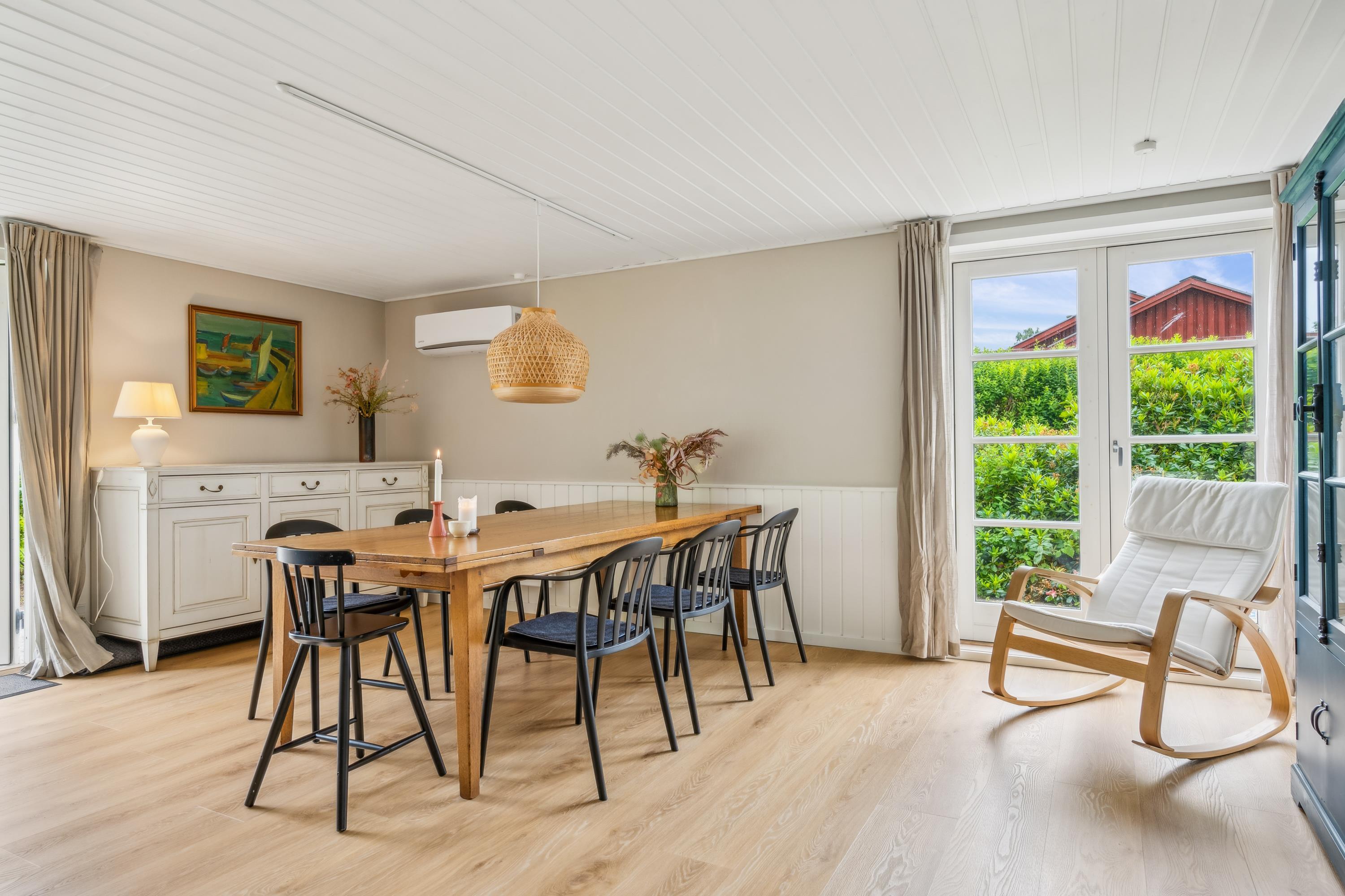 Ahl Strand is a peaceful and very family-friendly area, known for its white sandy beach and shallow water with sandbanks. It's also a favourite spot for windsurfers and rich in wildlife and birds. The house is just a 10-minute drive from the charming town of Ebeltoft with its cobbled streets, small specialty shops, cafés, and several good restaurants by the harbour. Don’t miss visiting the Glass Museum, the Frigate Jylland, and the Old Town Hall – and a trip to Scandinavia’s largest amusement park, Djurs Sommerland, is highly recommended.