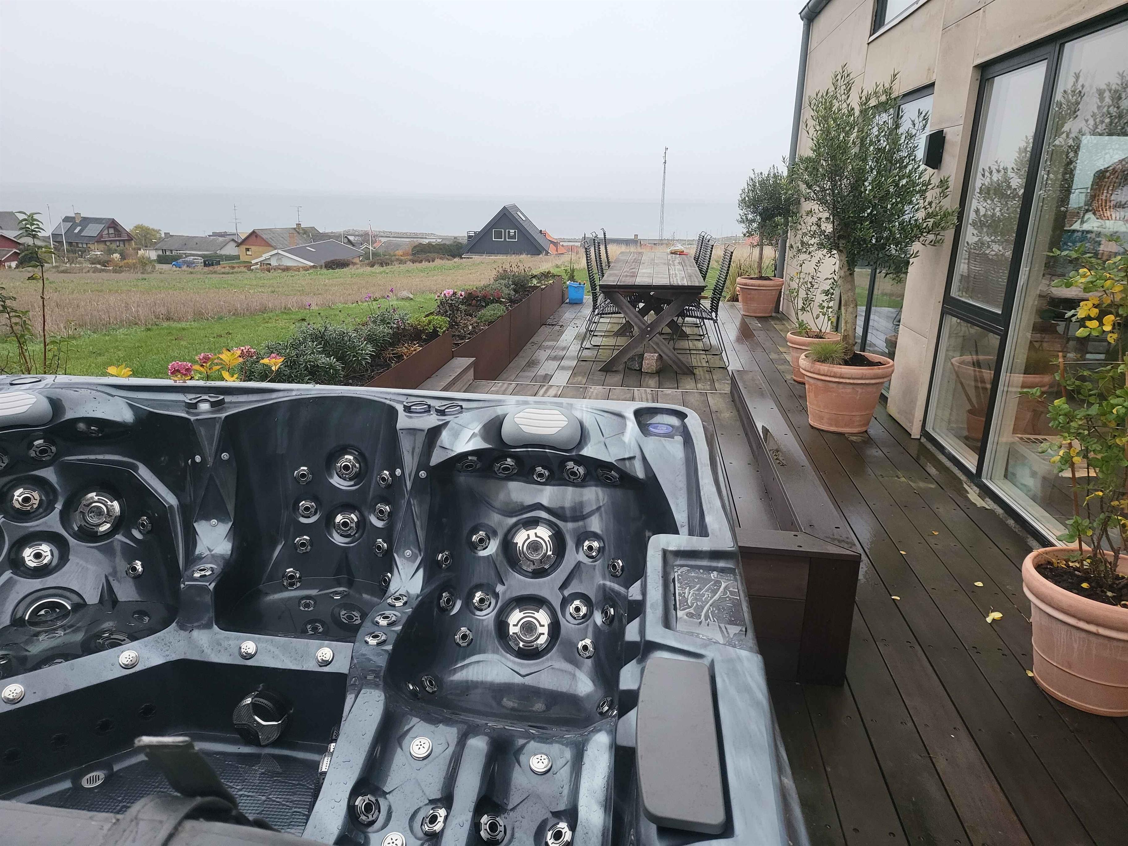 This newly built holiday home offers a modern and peaceful setting for your stay. With 190 m², there is plenty of space for relaxation and shared time, designed with a focus on functionality and comfort. The house features four bedrooms and eight sleeping places, making it ideal for two families or a larger group of friends. The layout balances shared areas and privacy. From the living areas, you enjoy a 180-degree sea view. Outdoors, a spa awaits, perfect for ending the day while overlooking the sea. The water is approximately 400 meters away, making spontaneous seaside walks or morning swims easy. The surrounding area offers classic coastal nature, and the house is close to Allinge town with its harbor, cafés, shops, and local events.
