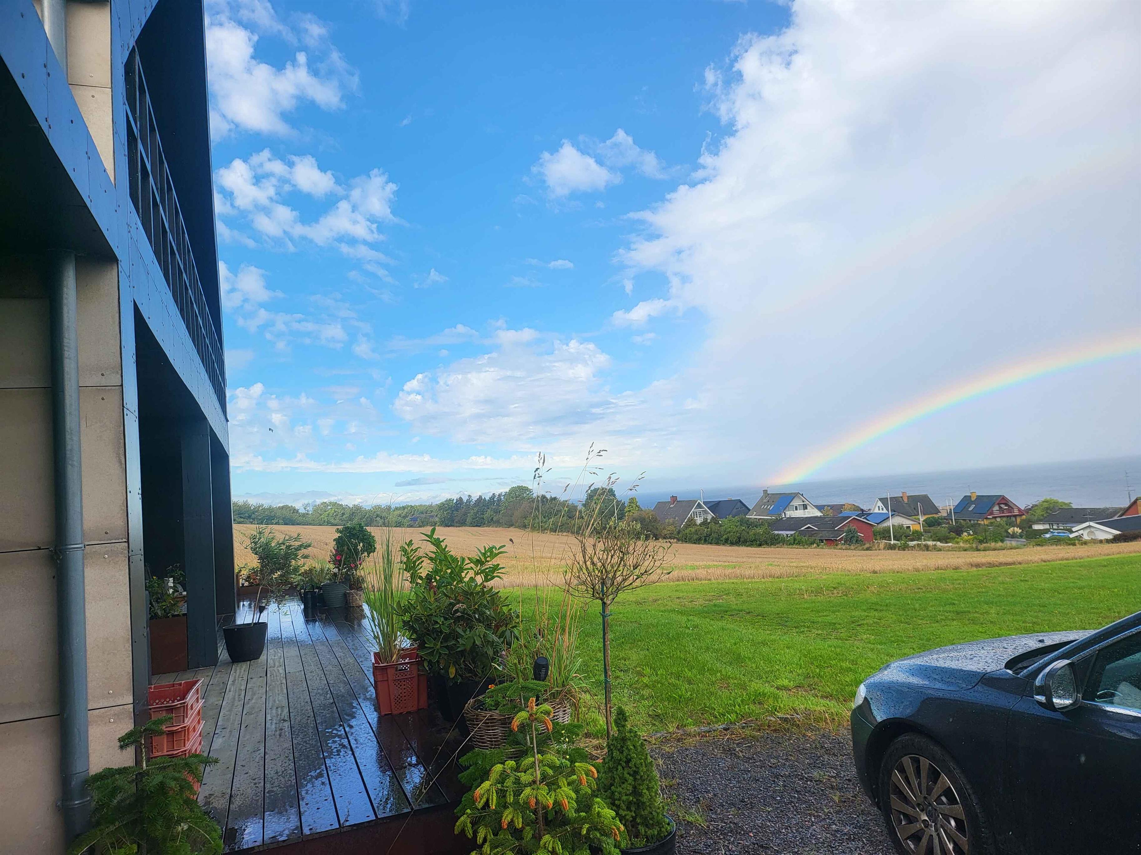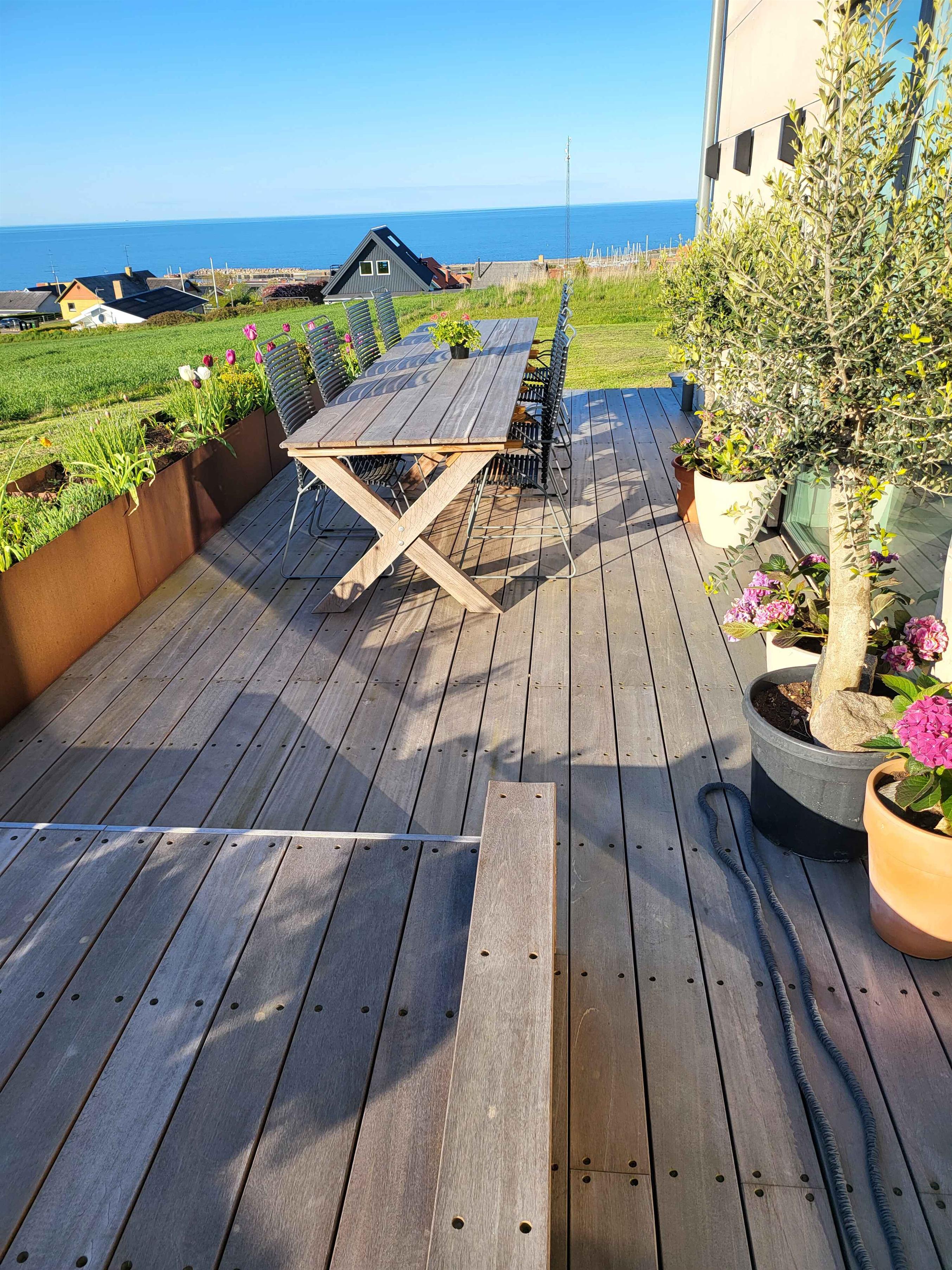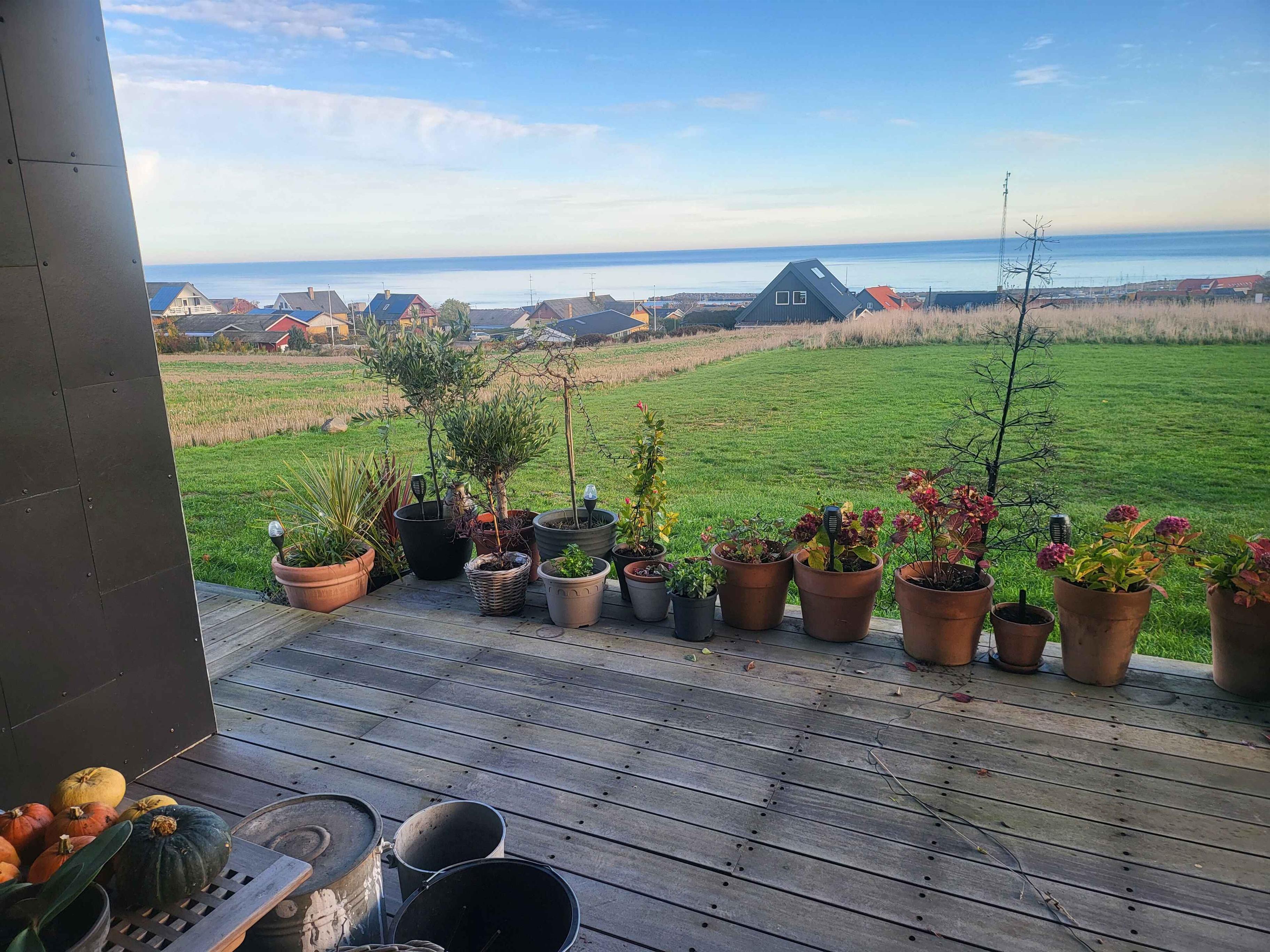 Newly built 190 m² holiday home with four bedrooms and eight sleeping places. 180-degree sea view, outdoor spa and only 400 meters to the water. Close to Allinge with harbor, cafés and experiences.