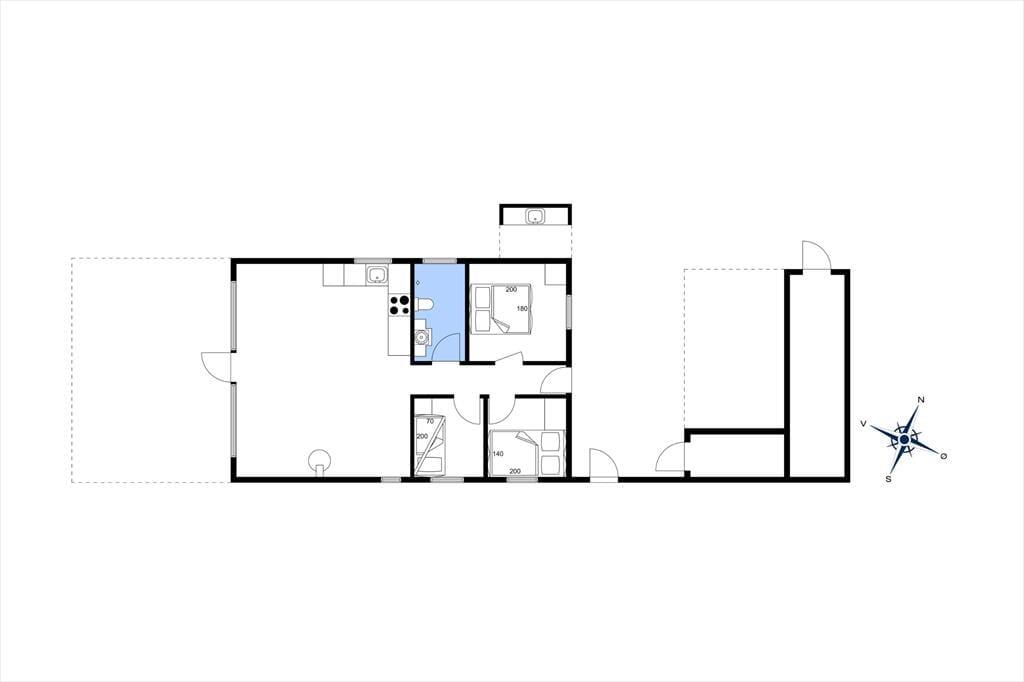 Der Aufenthaltsbereich dieses Ferienhauses besteht aus einer Kombination von Küche, Essbereich und Wohnzimmer und bietet ausreichend Platz für Ihre gesamte Familie. Der gesamte Aufenthaltsbereich ist dank der großen Fensterfront und der hellen, luftigen Einrichtung wunderbar freundlich und ansprechend. Die Küche ist 2018 erneuert geworden.Ûber einen kleinen Flur, gelangen Sie in das schöne Badezimmer und in die drei Schlafräume. Zwei der Schlafzimmer haben Doppelbetten und das andere hat ein Etagenbett