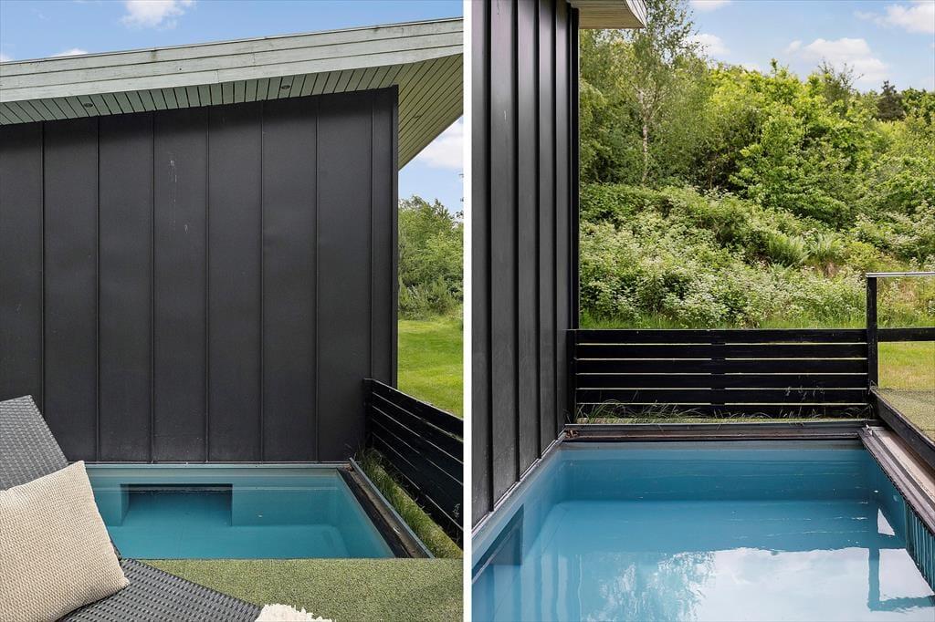 Auch im Außenbereich ist die Umgebung für das Ferienleben erstklassig. Das Grundstück ist 2800 m2 groß und wird von hohen Bäumen und Sträuchern umrahmt. Es gibt mehrere Rasenflächen, darunter ein Spielfeld mit einem Fußballtor, und im Südwesten des Hauses befindet sich eine große, sonnige, geflieste Terrasse, auf der Sie alle den Sommer beim Grillen feiern können. Am Haus gibt es auch einen Außenbereich mit einem kleinen Außenpool und Liegestühlen, der bei Sonnenschein über Als Odde garantiert ein Hit ist.
