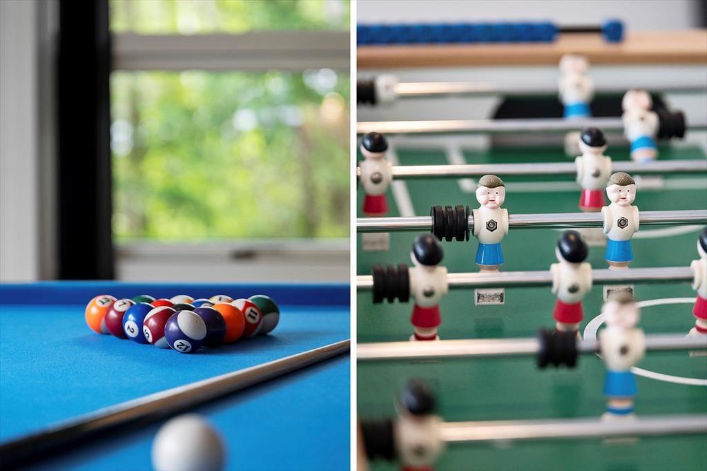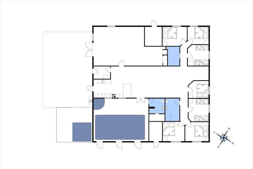 Im Inneren des 2012 erbauten Ferienhauses, das einfach und einladend eingerichtet ist, können Sie sich auf 256 m2 ausbreiten. Das Herzstück des Hauses ist ein großer Wohnbereich, der aus einem Wohnzimmer und einer Küche in offener Verbindung besteht. Die Küche ist gut ausgestattet - mit einem Geschirrspüler, zwei Backöfen und viel Platz am Tisch, so dass es leicht ist, für viele zu kochen. Wenn das Essen fertig ist, können sich alle um den langen Tisch versammeln und danach ist es vielleicht Zeit, sich auf dem Sofa zu entspannen, wenn man nicht in den Aktivitätsraum geht, um Billard, Tischfußball oder Airhockey zu spielen. Den ganzen Tag über gibt es einen Poolbereich mit Schwimmbad, Whirlpool und Sauna, wo man sich auf Spaß und Entspannung freuen kann. Drei Bäder gehören zur Ausstattung, und wenn es Zeit zum Schlafengehen ist, können Sie sich auf die sieben Schlafzimmer und der Dachboden des Hauses verteilen.