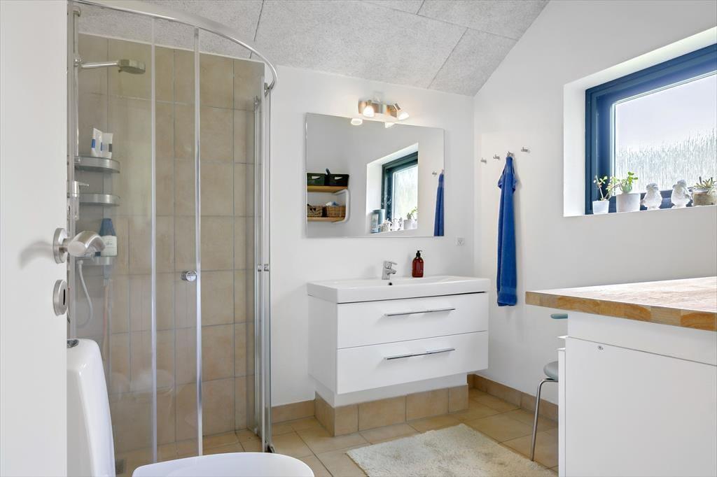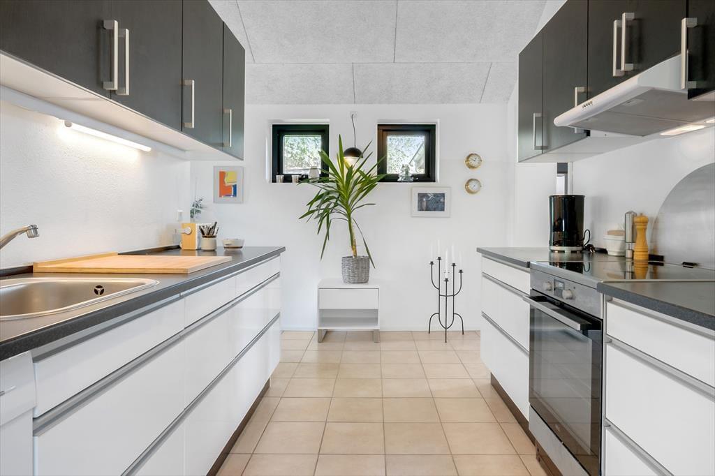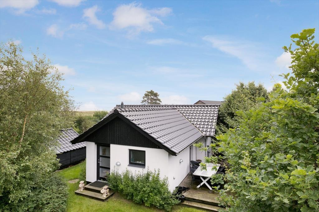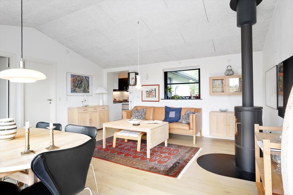 Wenn Sie das Ferienhaus betreten, werden Sie von einem hellen und einladenden Wohnbereich begrüßt, in dem Sie sofort die Urlaubsatmosphäre spüren können. Das Haus ist komfortabel und gemütlich eingerichtet, und die großen Fenster sorgen für fantastisches Licht und einen direkten Blick auf die wunderschöne Natur und den Limfjord. Nach einem langen Tag können Sie sich im Wohnzimmer entspannen, wo Sie den Holzofen anfeuern und die warme und gemütliche Atmosphäre genießen können. Das Ferienhaus verfügt auch über einen Anbau,. Das einladende Schlafzimmer im Haupthaus lässt Sie in Ruhe aufwachen, so dass Sie den Tag mit Energie und Freude beginnen können.