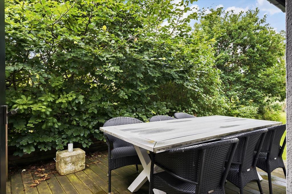 Der Außenbereich ist eine wahre Oase, in der Sie sowohl die Sonne als auch den Schatten genießen können. Die große Terrasse ist der perfekte Ort, um Zeit mit Ihren Lieben zu verbringen, ob Sie nun Ihren Morgenkaffee bei Sonnenaufgang genießen oder am Abend grillen, wenn die Sonne untergeht. Das Gelände ist von viel Grün umgeben und bietet Platz zum Spielen und Entspannen. Die beruhigende Natur und der atemberaubende Blick auf den Limfjord vermitteln ein Gefühl der Ruhe und des Wohlbefindens, und Sie können die Vögel zwitschern hören, während Sie sich entspannen. Wenn Sie Lust auf ein erfrischendes Bad haben, können Sie sowohl den Limfjord als auch das Kattegat schnell erreichen - perfekt für einen entspannten Tag am Wasser.
