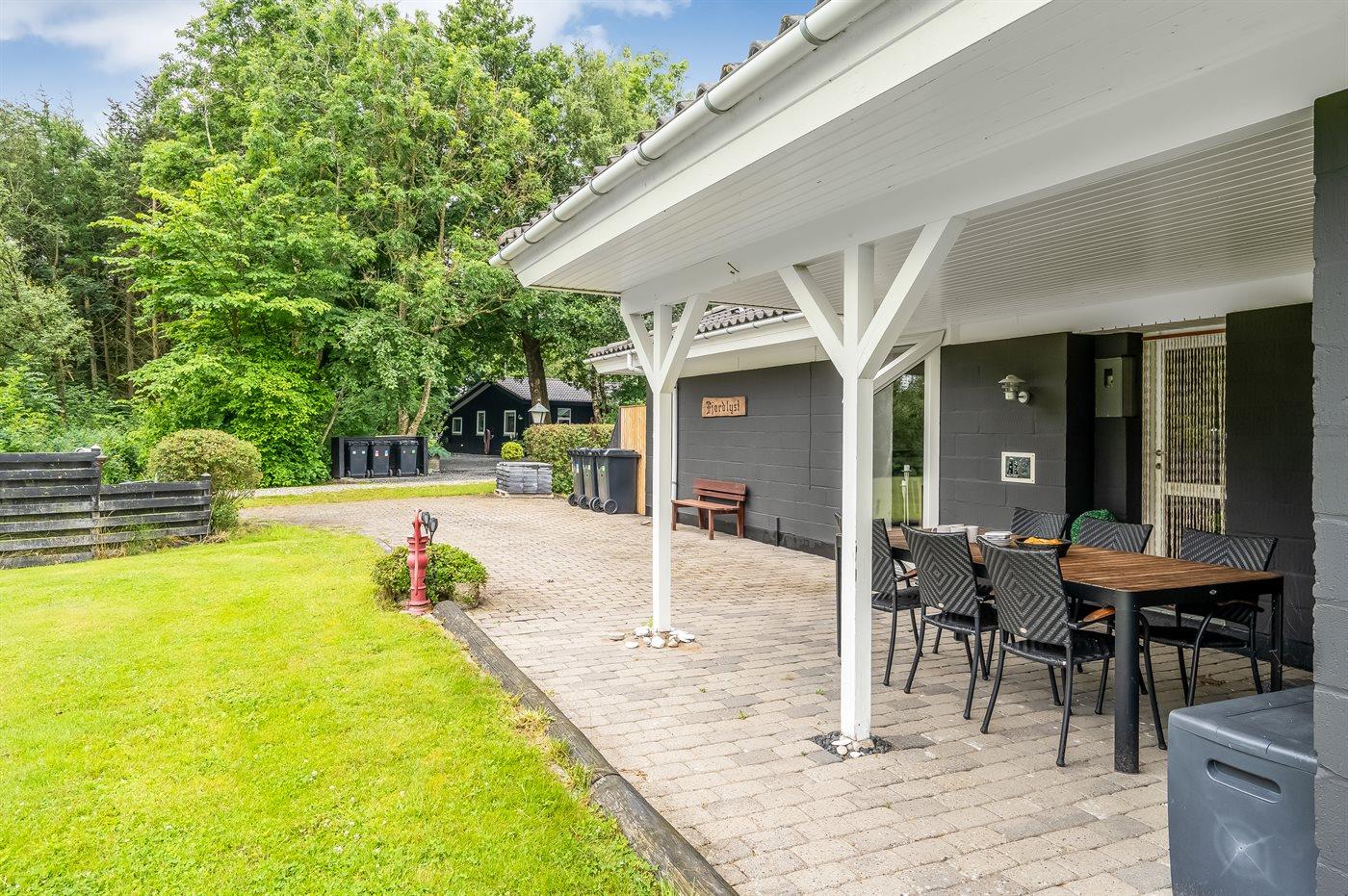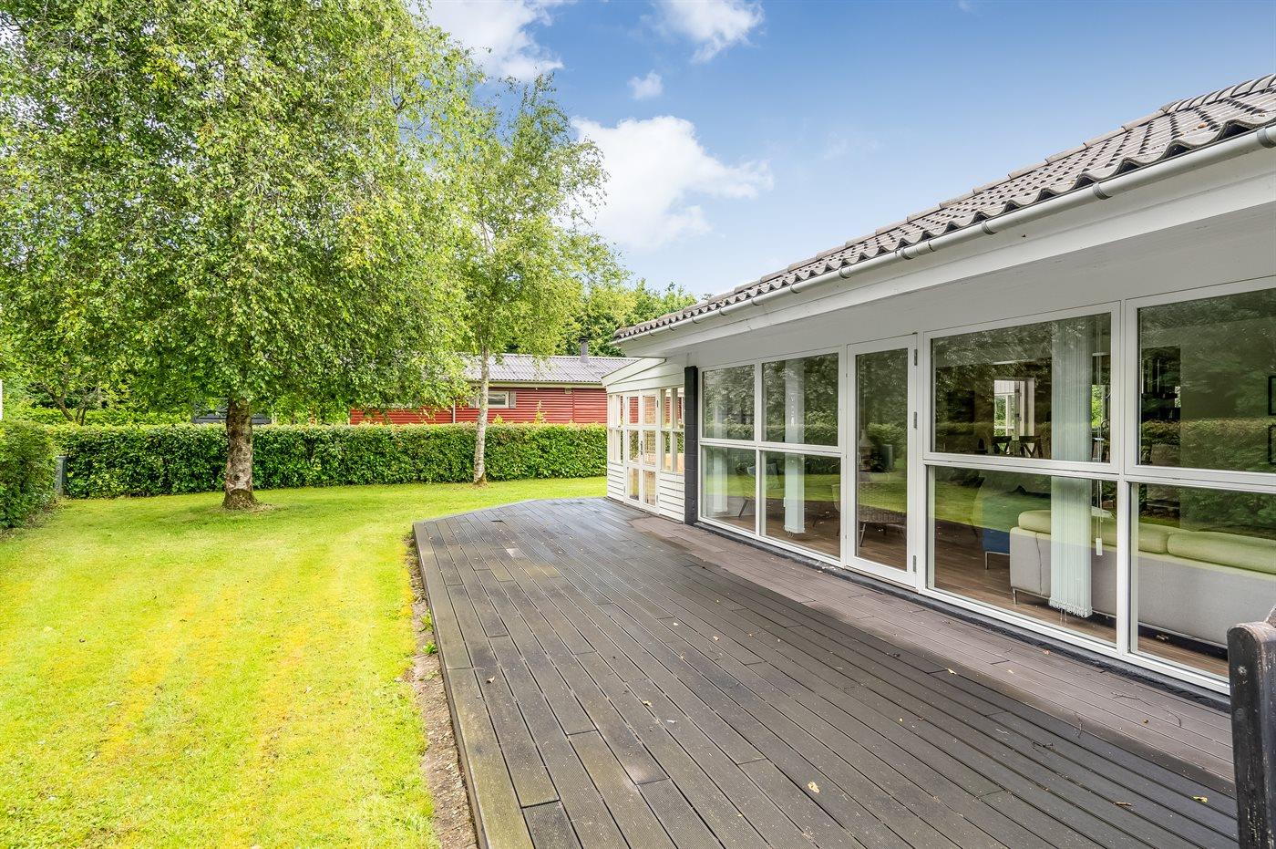 Ferieboligen er beliggende på en 3000 m² stor naturtomt. Avstand til fjord er 500 m. Nærmeste butikk ligger i en avstand på 1000 m. Golfbane i en avstand på 20000 m. Til ferieboligen hører 40 m² terrasseareal. I tillegg er det utgang til utestue. Det er Redskapsrom. Avstand til lekeplass er 1000 m. Det er grill til rådighet. P-plass ved huset.