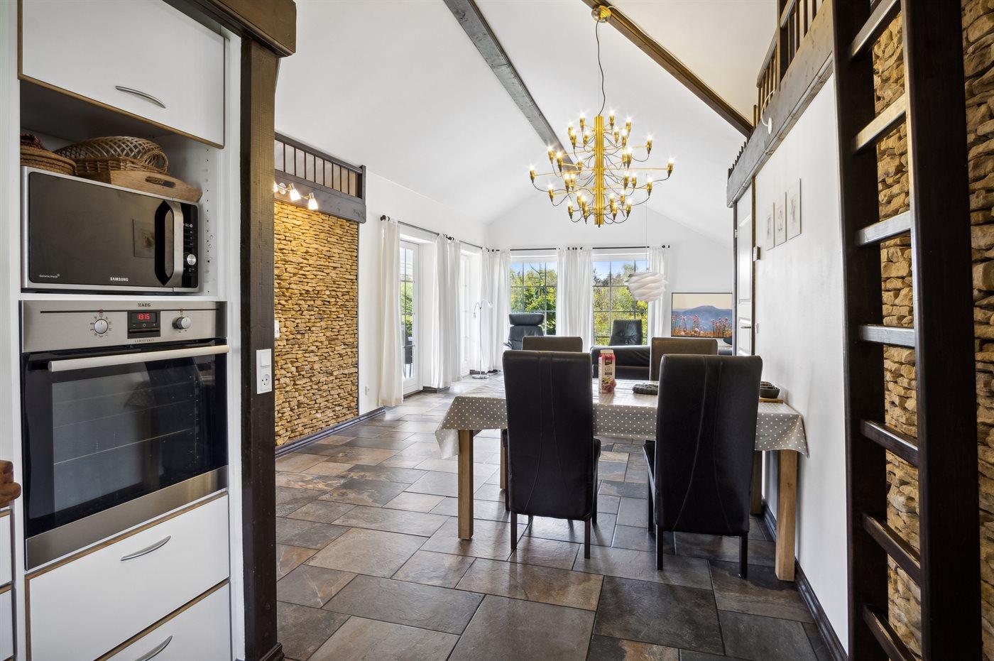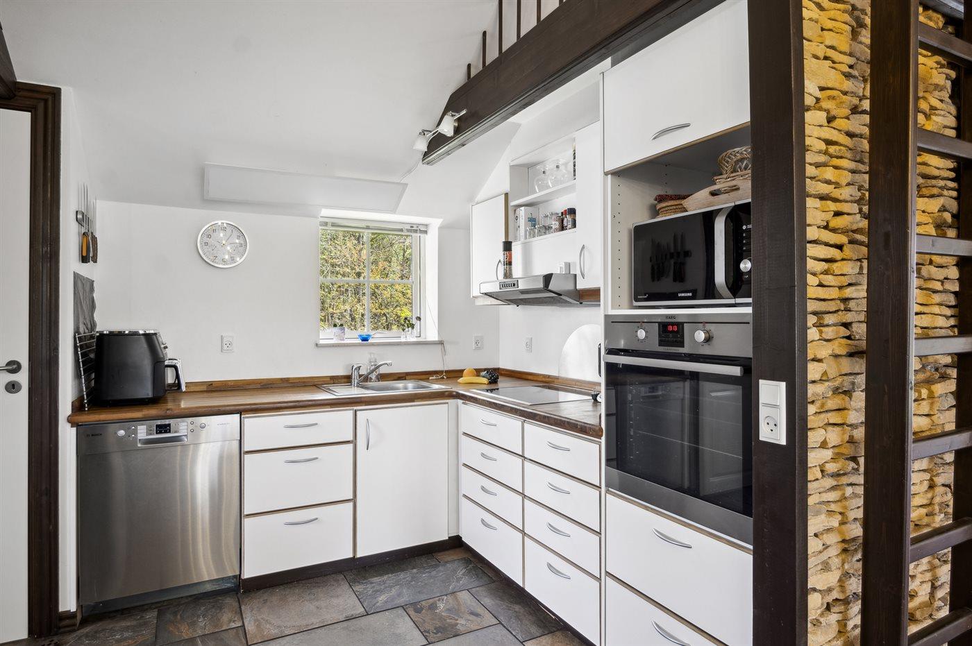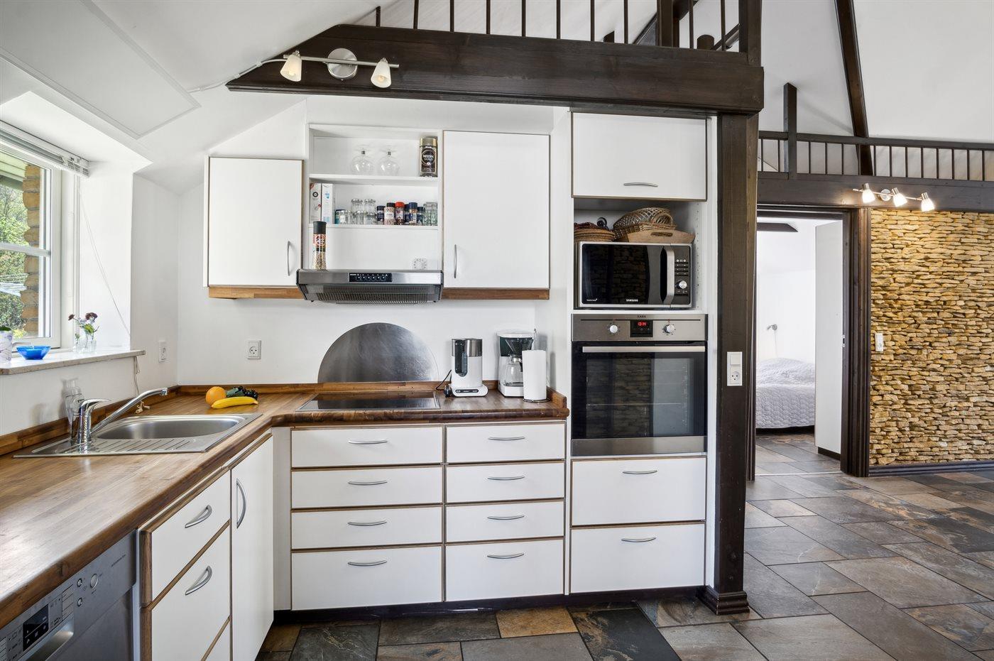 Kjøkkenet er utstyrt med 1 kjøleskap. Det er 4 keramiske kokeplater. Det er 4 induksjonskokeplater, varmluftsovn, mikrobølgeovn og oppvaskmaskin.
