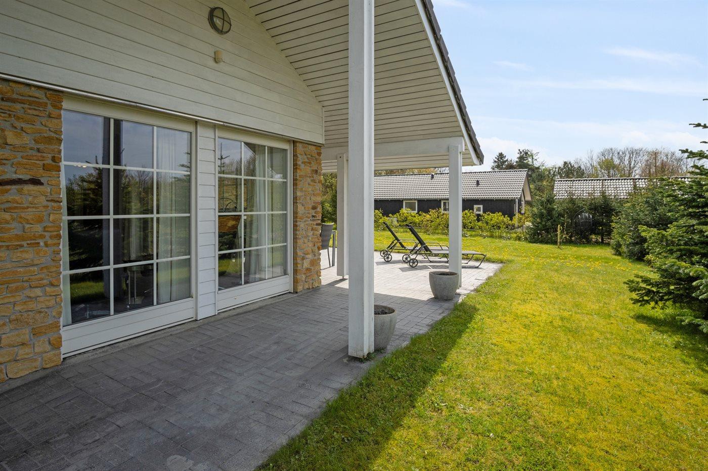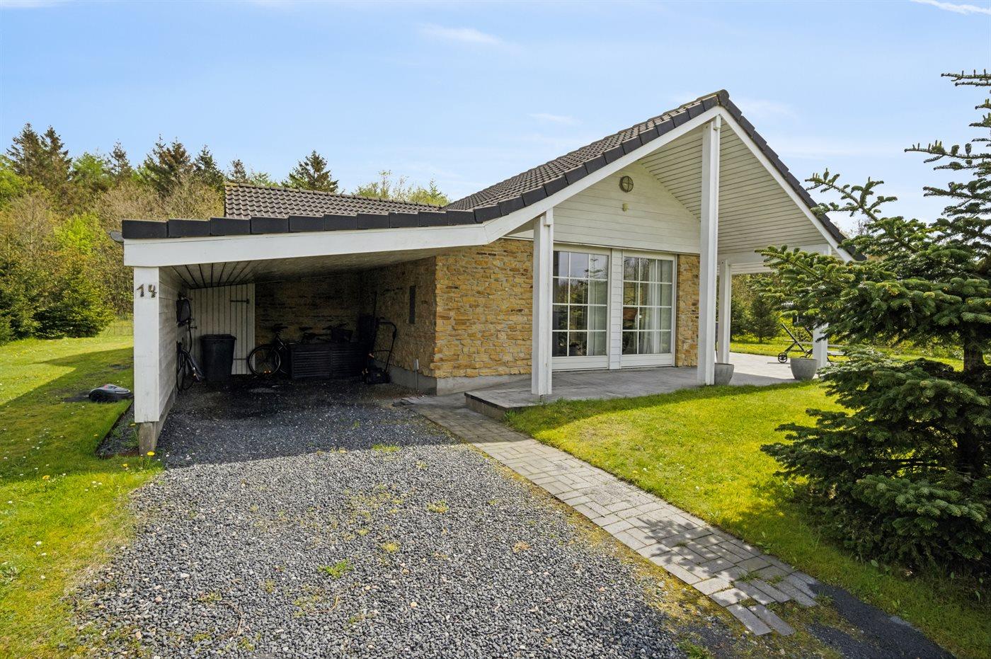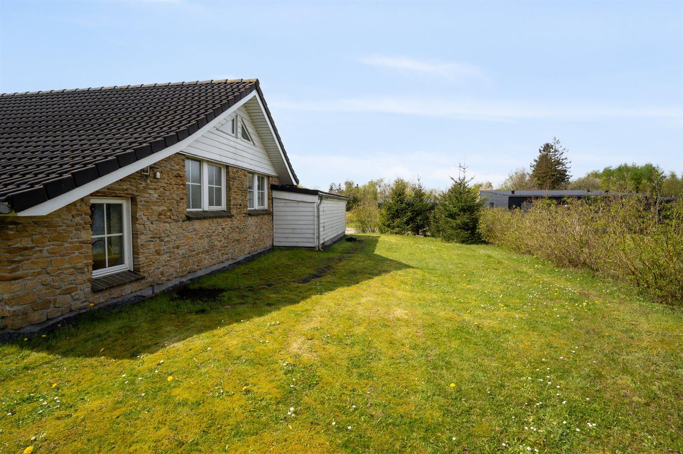Ferieboligen er beliggende på en 877 m² stor anlagt have. Avstand til hav er 29000 m.Avstand til Vadehavet er 20000 m. Avstand til sjø er 2000 m. Nærmeste butikk ligger i en avstand på 2000 m. Til ferieboligen hører åpent terrasseareal. I tillegg er det overdekket terrasse. Det er grill til rådighet. Det er carport til rådighet. Det er montert kontakt til lading av elbil ved huset. Ladekontakt type 2. P-plass ved huset.
