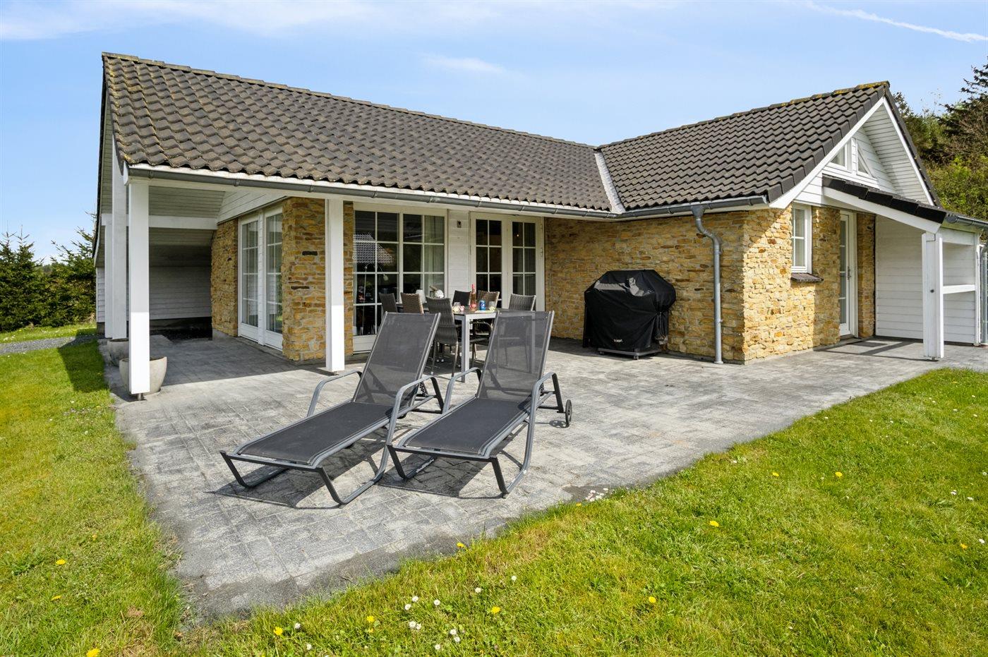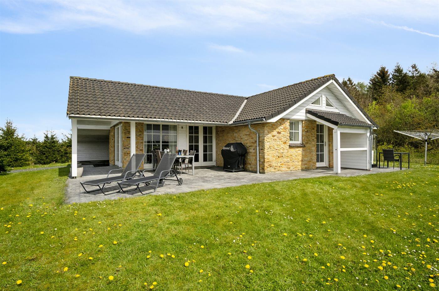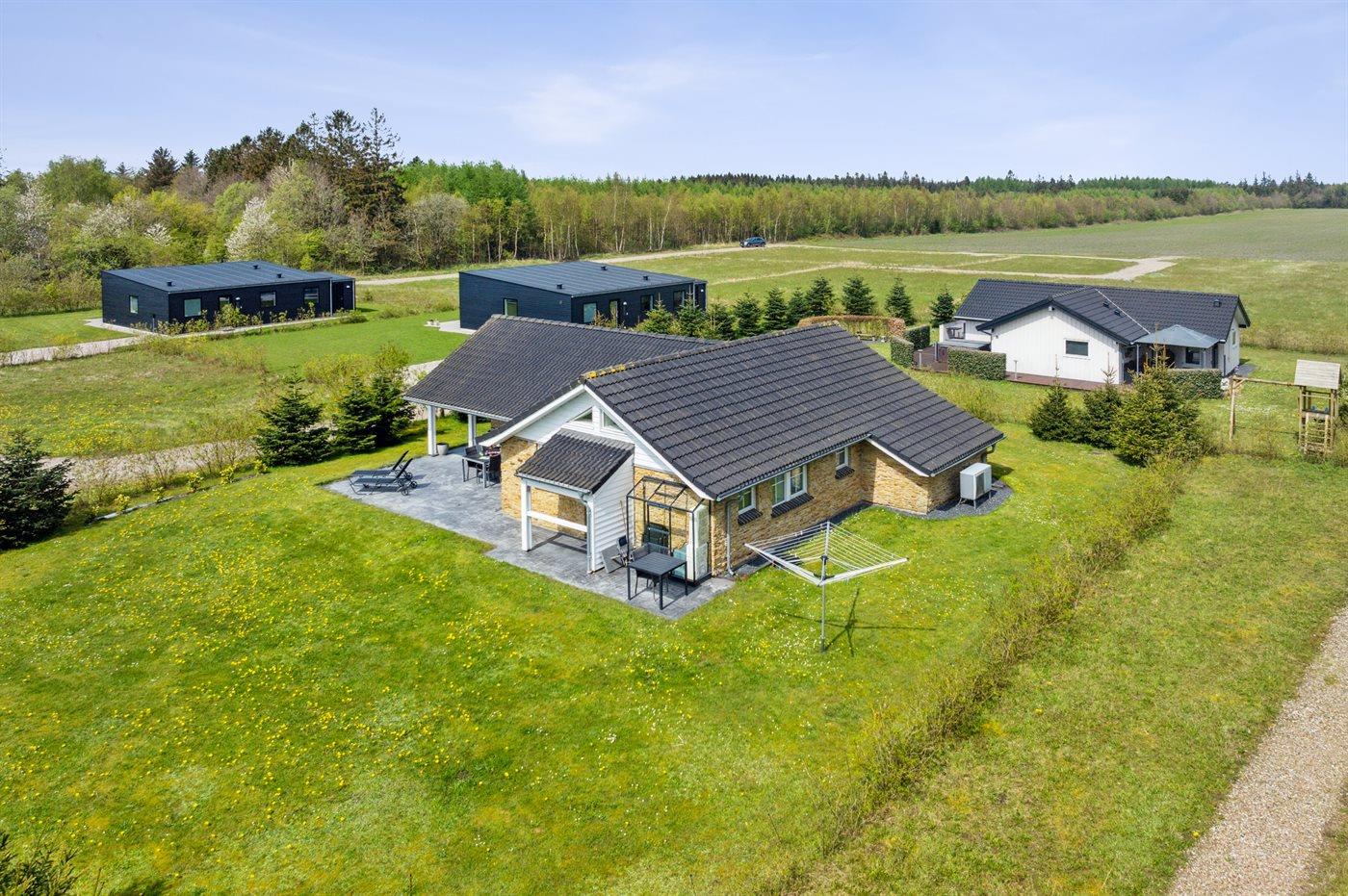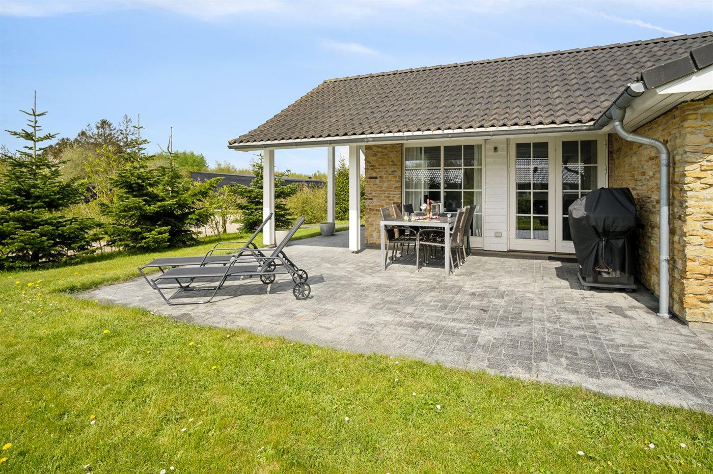 Ferieboligen er beliggende på en 877 m² stor anlagt have. Avstand til hav er 29000 m.Avstand til Vadehavet er 20000 m. Avstand til sjø er 2000 m. Nærmeste butikk ligger i en avstand på 2000 m. Til ferieboligen hører åpent terrasseareal. I tillegg er det overdekket terrasse. Det er grill til rådighet. Det er carport til rådighet. Det er montert kontakt til lading av elbil ved huset. Ladekontakt type 2. P-plass ved huset.