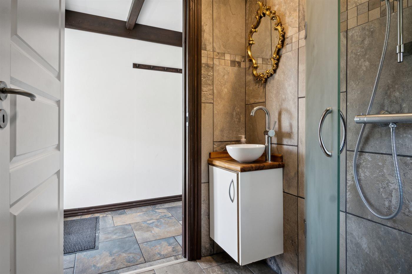 Det er 2 baderom med dusj og 2 toaletter. Det er varme i gulvet i 2 av baderom.