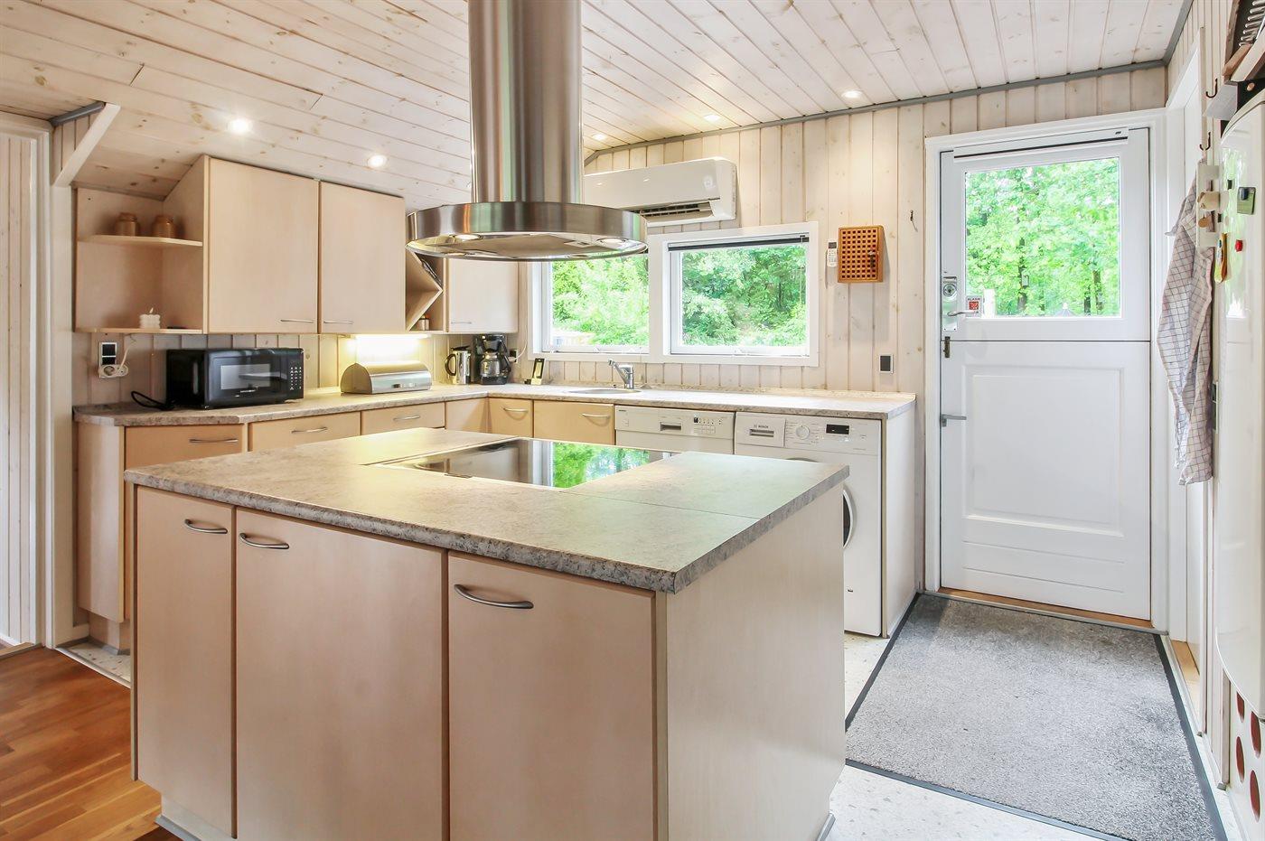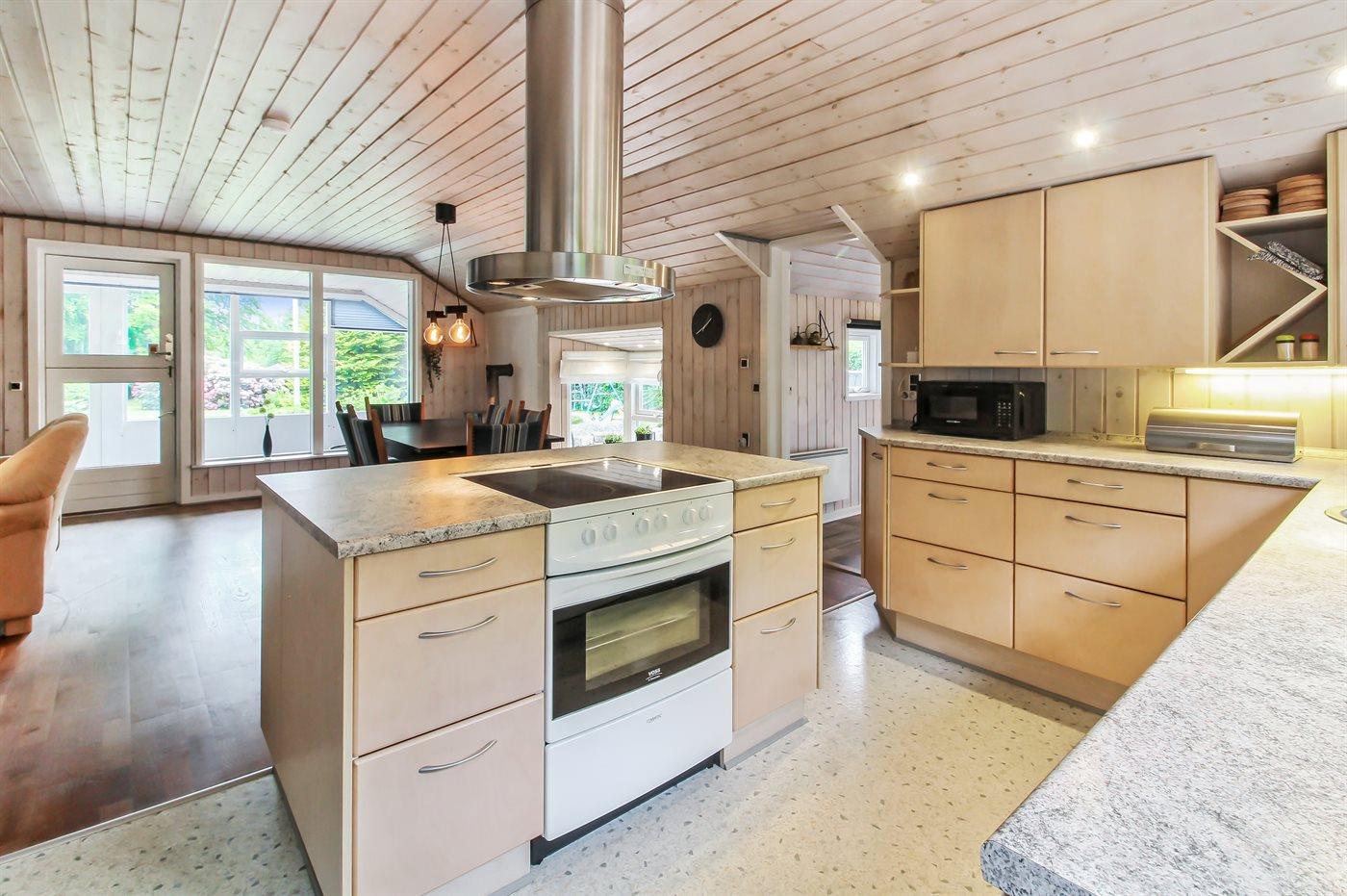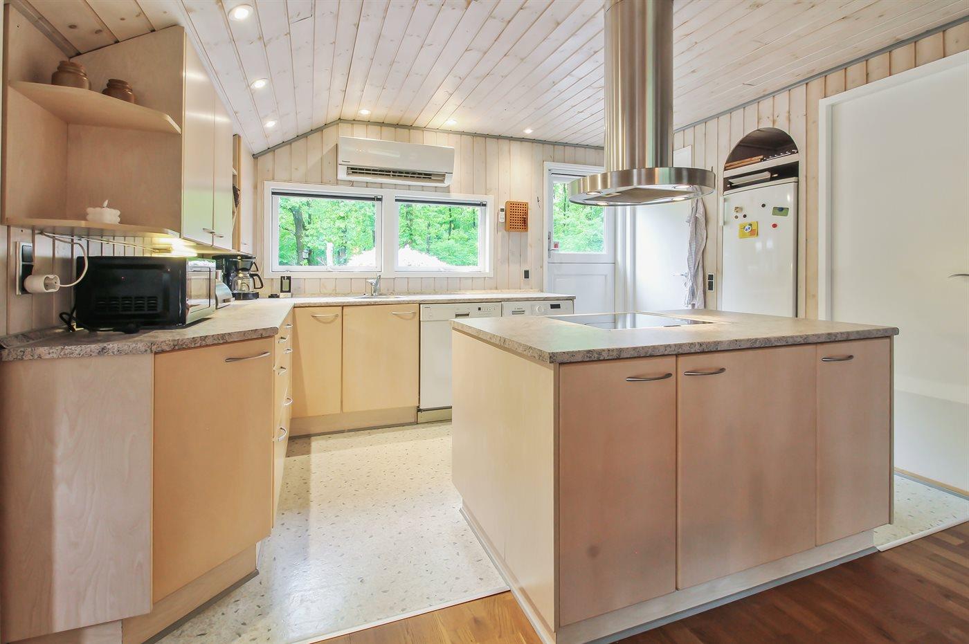 Kjøkkenet er utstyrt med 1 kjøleskap. Det er 4 keramiske kokeplater, varmluftsovn, mikrobølgeovn og oppvaskmaskin.