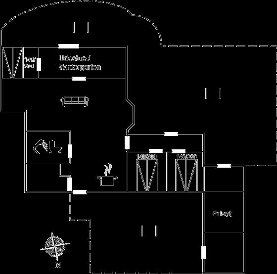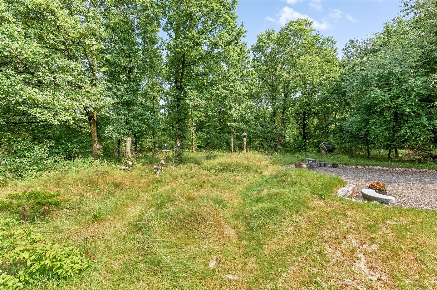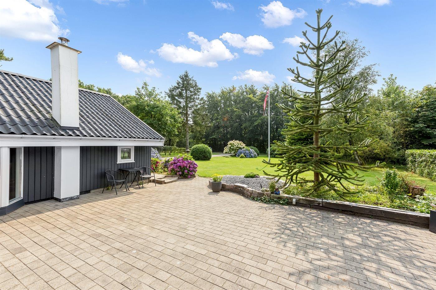 Ferieboligen er beliggende på en 876 m² stor anlagt have. Avstand til hav er 33000 m.Avstand til Vadehavet er 15000 m. Avstand til sjø er 1600 m. Nærmeste butikk ligger i en avstand på 2000 m. Golfbane i en avstand på 800 m. Til ferieboligen hører åpent terrasseareal. I tillegg er det utgang til utestue. Huske. Sandkasse. Rutsjebane. Avstand til lekeplass er 1600 m. Det er grill til rådighet. P-plass ved huset.