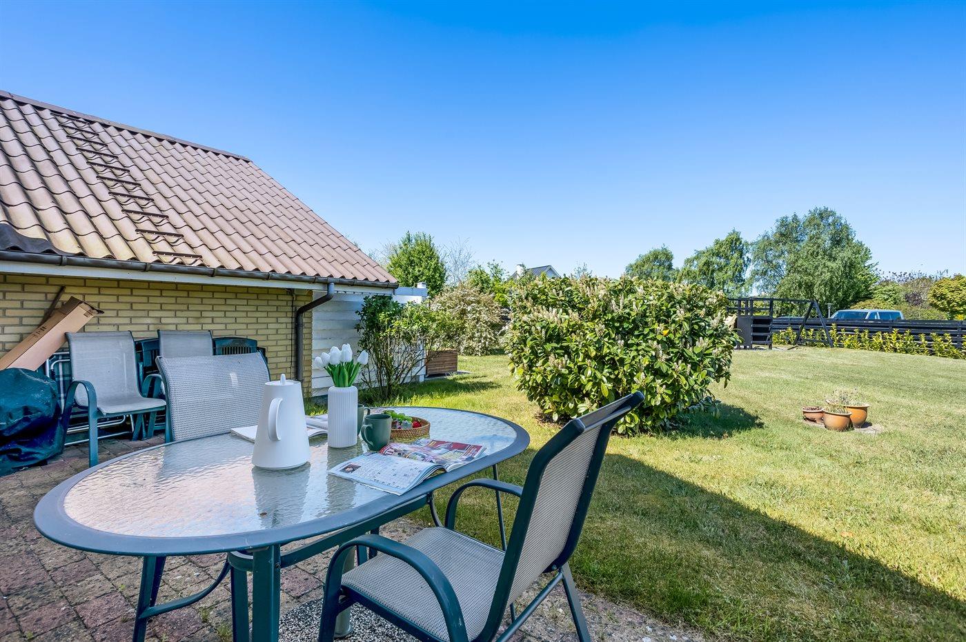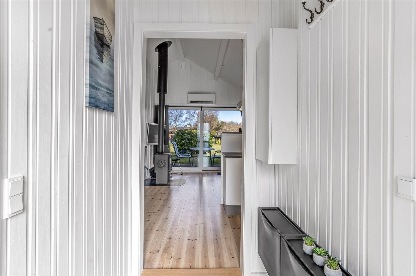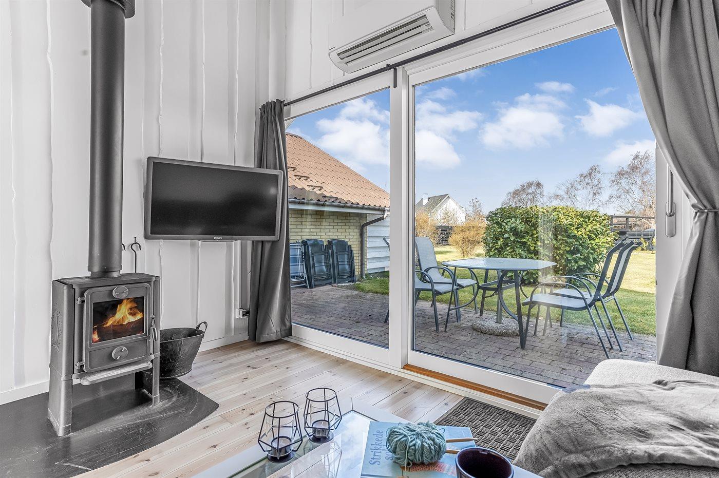 Ferieboligen er beliggende på en 150 m² stor anlagt have. Avstand til hav er 150 m. Det er en badebro i nærheten. Nærmeste butikk ligger i en avstand på 4000 m. Til ferieboligen hører åpent terrasseareal. Avstand til lekeplass er 5 m. Det er grill til rådighet.