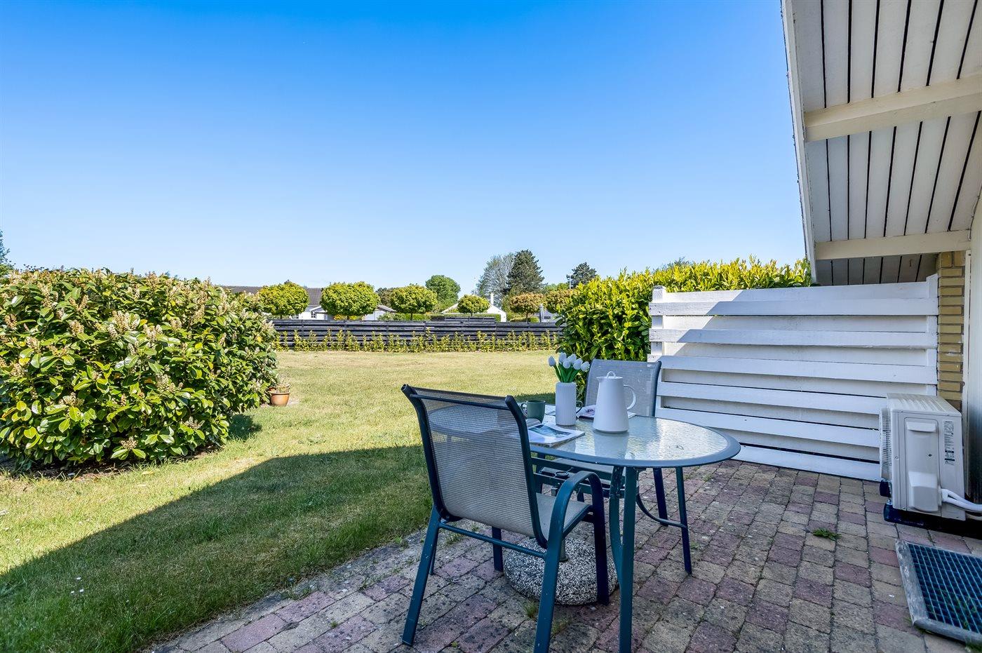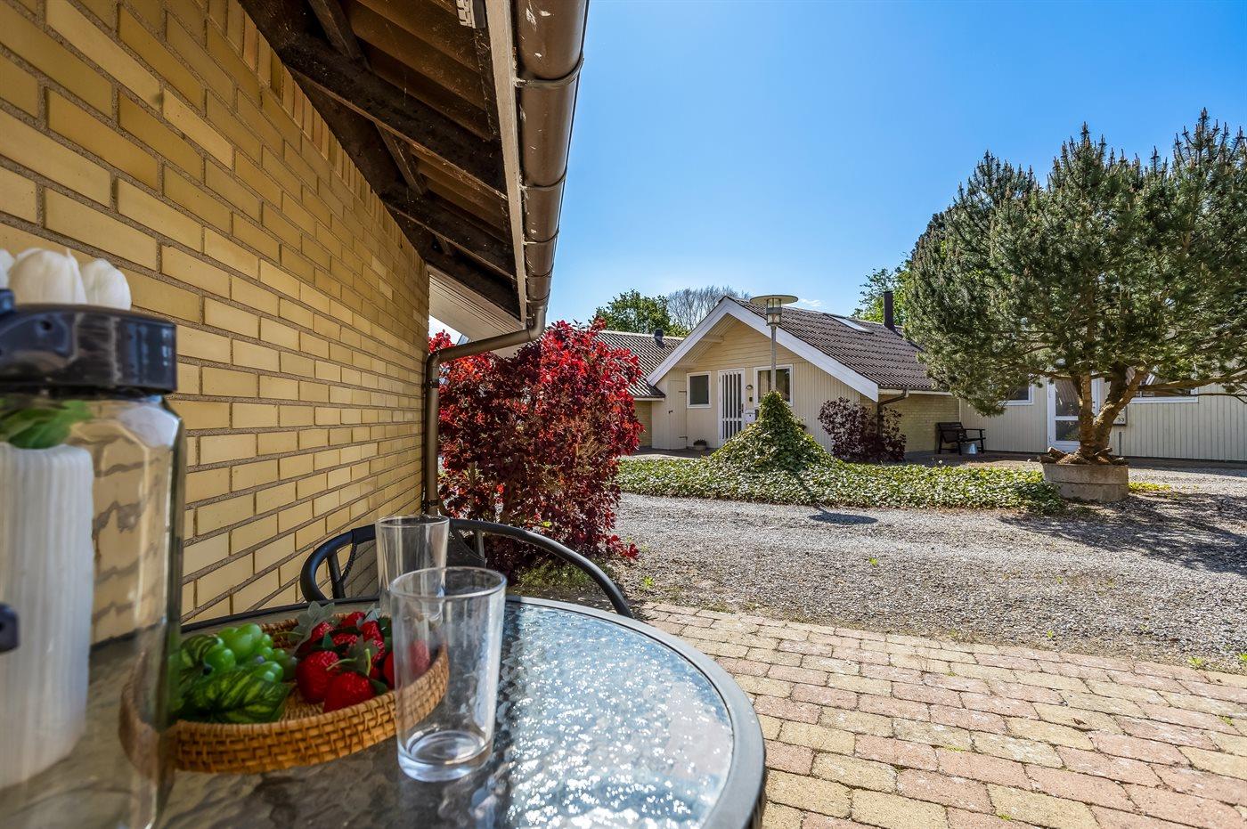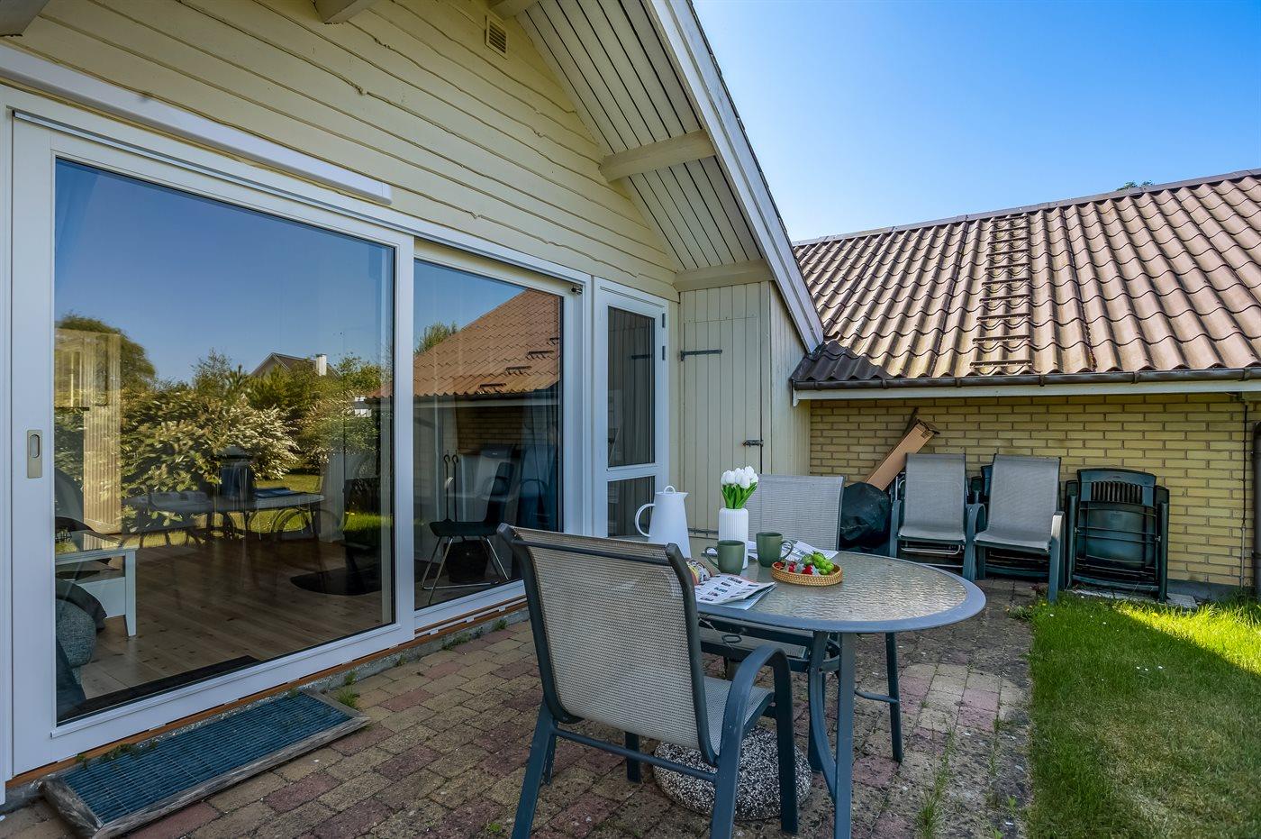 Ferieboligen er beliggende på en 150 m² stor anlagt have. Avstand til hav er 150 m. Det er en badebro i nærheten. Nærmeste butikk ligger i en avstand på 4000 m. Til ferieboligen hører åpent terrasseareal. Avstand til lekeplass er 5 m. Det er grill til rådighet.