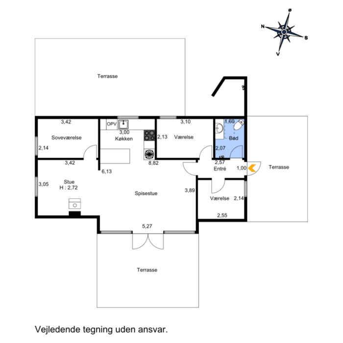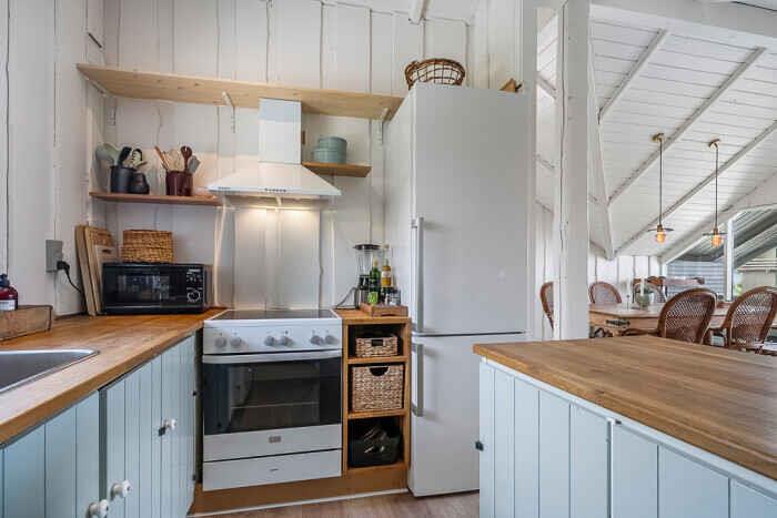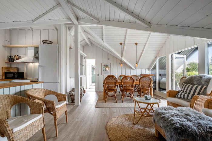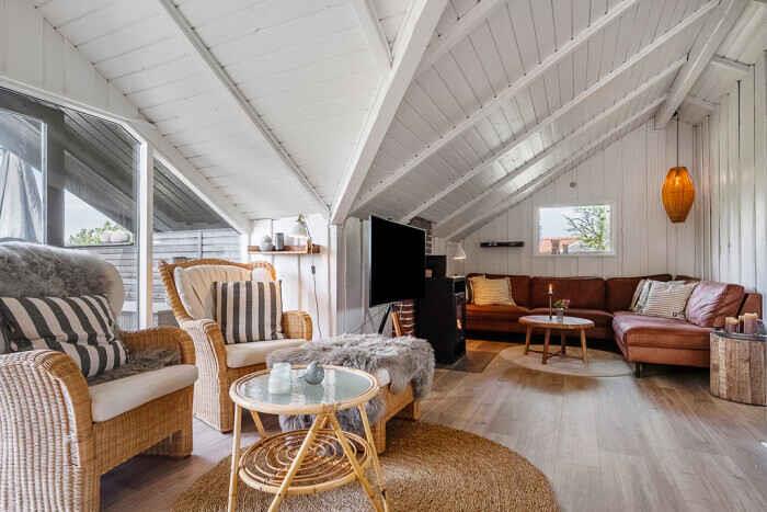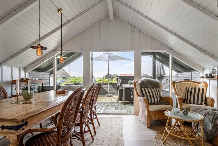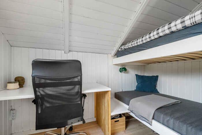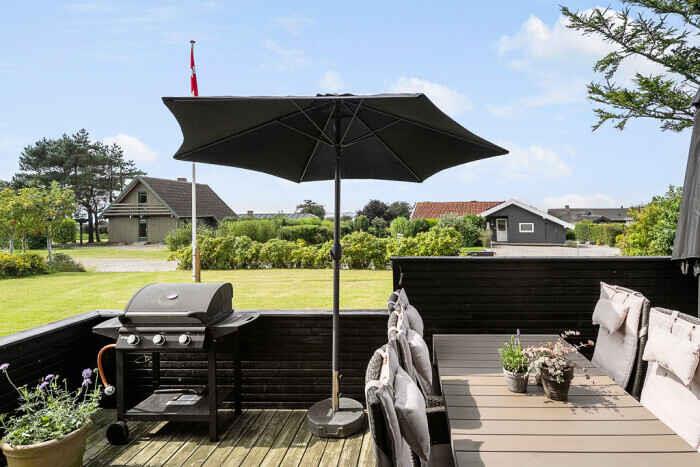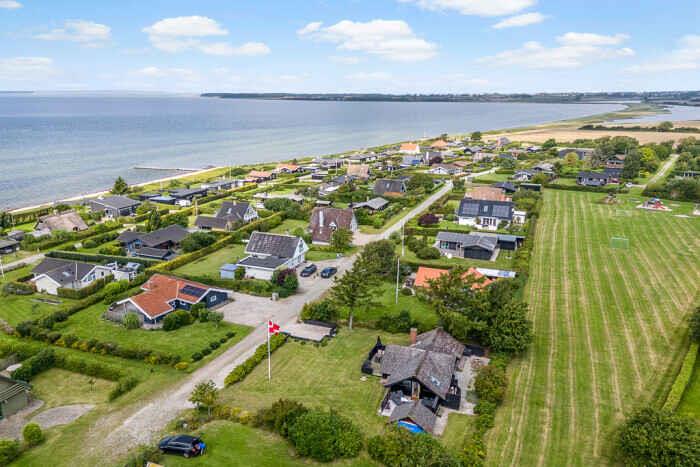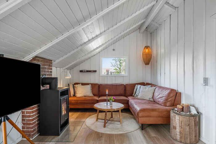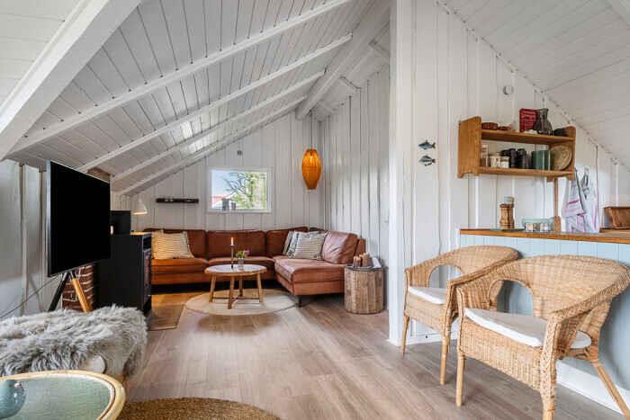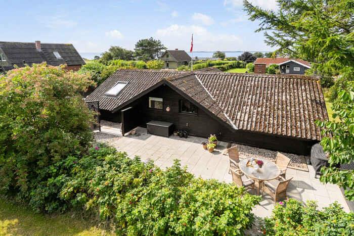 Just a few minutes’ walk from the water, this well-designed holiday home is ideally located. With three bedrooms and six beds, there’s room for both family and friends at any time of the year. The home offers 68 m², optimally laid out with open living spaces and comfortable sleeping options. New bathroom. A heat pump ensures a pleasant indoor climate in both summer and winter, and during colder months you can add warmth from the wood-burning stove. Firewood can be bought on site. There is internet, making streaming and remote work easy. The large outdoor hot tub accommodates up to 6 people. Here you can sit with sea views towards Bogø while enjoying a relaxing back massage. The house also has an outdoor shower with hot and cold water, perfect for cooling off in the summer heat or rinsing off sand after a swim. The spacious plot offers plenty of room for play and activities. Children and dogs can run freely in the partially fenced garden while adults enjoy the peace on one of the three lovely terraces. Two of them offer views towards Assens, Bogø and the open landscape. There is direct access to a large playground and a football pitch. The nearby beach is shallow and child-friendly. Soft sand and calm waters make it perfect for swimming, building sandcastles and long coastal walks. The house has sea views, and a short walk brings you right to the shore. Next to the house is a campsite where you can use the swimming pool and mini-golf for a small fee. The campsite also has a café and a small supermarket with essentials (open in season). The area offers beautiful nature and great opportunities for hiking and cycling, with trails through forests, along fields and close to the coast. In nearby harbour towns you’ll find charming cafés, local restaurants and small shops. Fresh fish and seafood can be bought directly from the boats. The holiday home is in a peaceful area where you can combine relaxation and activities, whether you seek quiet surroundings or holiday fun. With the beach, green spaces and useful facilities close by, this is an ideal setting for a holiday filled with relaxation and experiences. Note: Not for commercial rental.