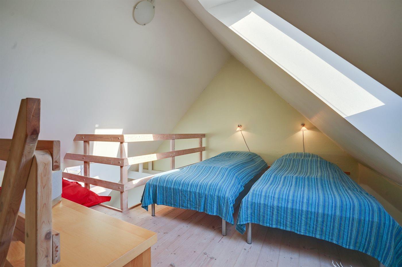 Det er i alt 1 soverom. Soveplassene fordeler seg på: 2 soveplasser i dobbeltseng. 2 soveplasser i enkeltsenger. 2 soveplasser i sovesofa (dobbelt). 2 av disse soveplasser finnes i stuen og 2 finnes på hemsen. I tillegg er det 1 stk. barneseng.