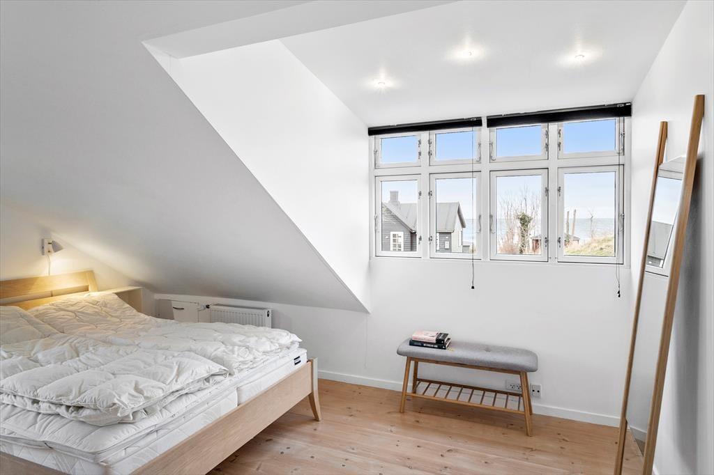 Das Sommerhaus samt Nebengebäude bieten zusammen eine Menge Platz für sowohl gemütliches Beisammensein als auch für ein wenig Zeit jeweils allein. Das helle Wohnzimmer mit Holzfußboden, Kamin und Tür zur Terrasse bildet mit der gut ausgestatteten Küche eine Einheit. Vom Eingang eine Stufe hinunter gelangt man zum Badezimmer mit Dusche und Handtuchtrockner. Im ersten Stock befindet sich ein geräumiger Absatz; hier sind zwei schöne Schlafräume mit doppelten Boxspringbetten untergebracht. Hier hat man Meerblick im einen Zimmer, während das andere über einen französischen Balkon verfügt. Auf der gesamten Etage ist Holzfußboden verlegt. Das hübsche Nebengebäude aus dem Jahr 2007 beherbergt außerdem zwei Schlafzimmer mit jeweils zwei Boxspringbetten, ferner einen Schlafboden und ein herrliches Badezimmer mit Fußbodenheizung. An der Ostseite des Nebengebäudes befindet sich eine Außendusche.