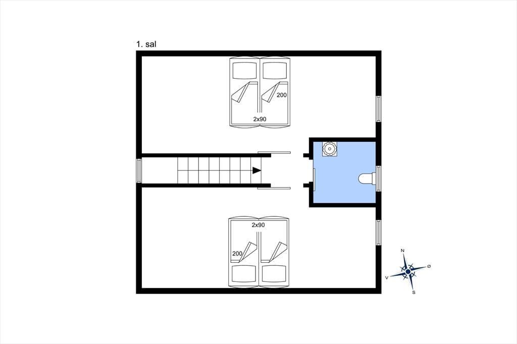 Eine schöne Treppe führt zentral im Haus in das Obergeschoss, wo dich zwei gemütliche Schlafzimmer sowie ein zusätzliches WC erwarten. Die Schlafzimmer mit Dachschrägen und Holzböden sind hell eingerichtet und verfügen über komfortable Betten sowie Stauraum. In beiden Zimmern stehen Einzelbetten, die sich bei Bedarf zusammenschieben lassen. Das zusätzliche WC sorgt für noch mehr Komfort, wenn ihr mit bis zu sechs Personen in der Ferienwohnung wohnt.