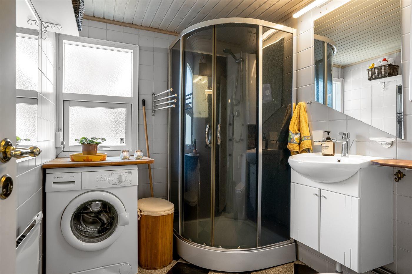 Det er 1 baderom med dusj og 1 toalett.. Det er varme i gulvet i 1 baderom.