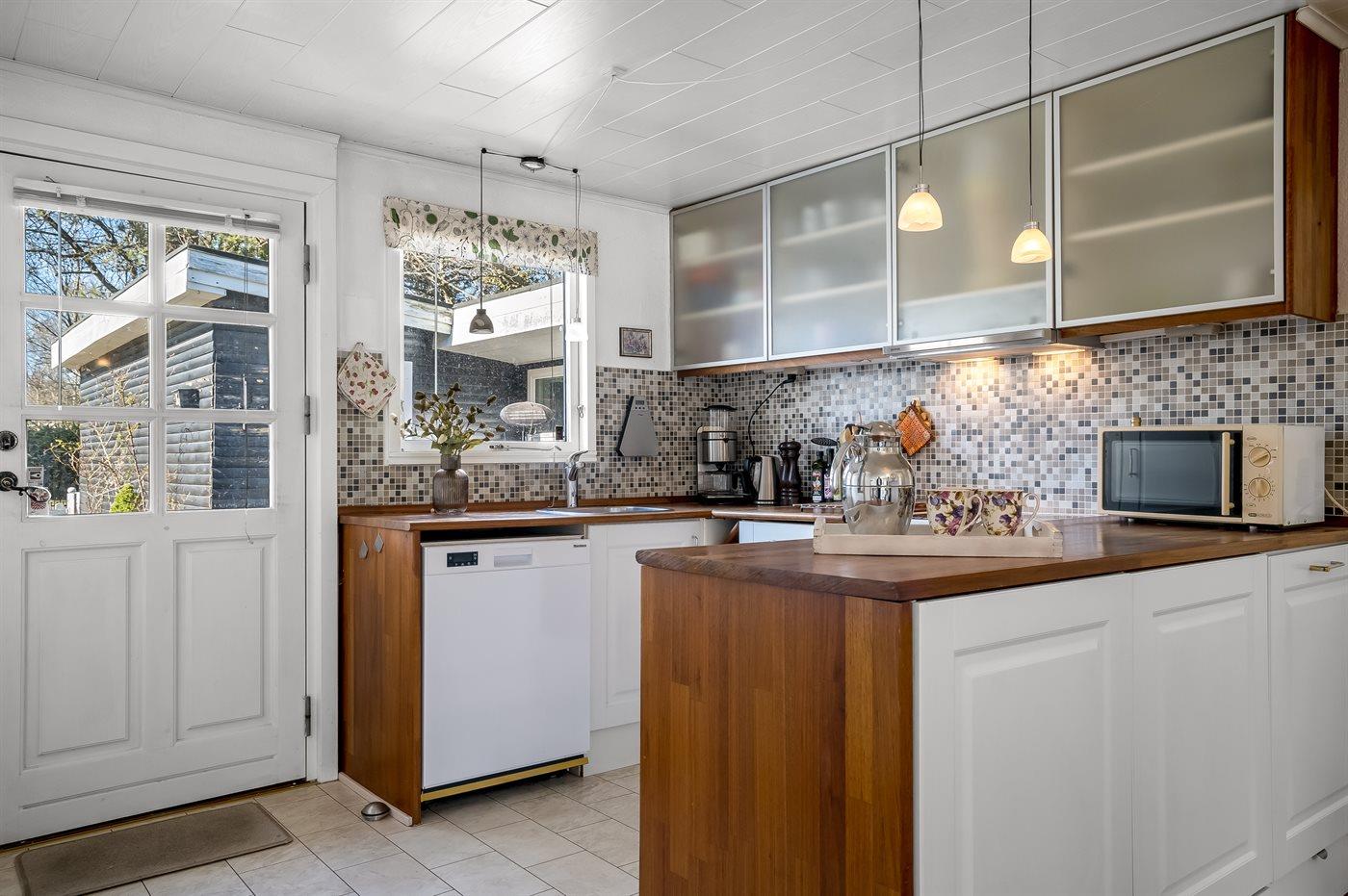 Kjøkkenet er utstyrt med 2 kjøleskap. Det er 4 keramiske kokeplater, varmluftsovn og oppvaskmaskin.