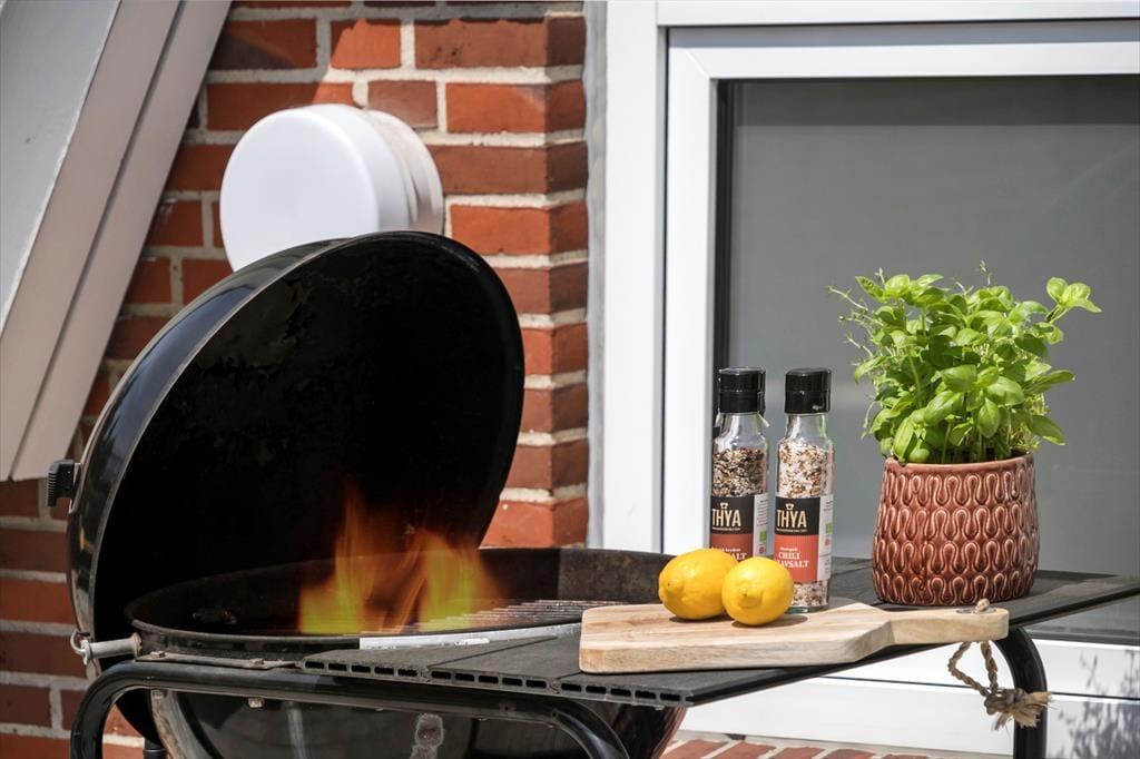 Das Leben im Freien hat auf dem großen Naturgrundstück, das direkt an die Kallesmærsk-Heide grenzt, optimale Bedingungen. Hier gibt es viel Platz für Spiel, Ballspiele und Bewegung, gleichzeitig aber auch reichlich Gelegenheit, einen ruhigen Platz mit Blick auf die offene Landschaft zu finden. Die Terrasse wird schnell zu einem natürlichen Treffpunkt, an dem die Mahlzeiten des Urlaubs genossen und die Abende in entspannter Gesellschaft verlängert werden können.
