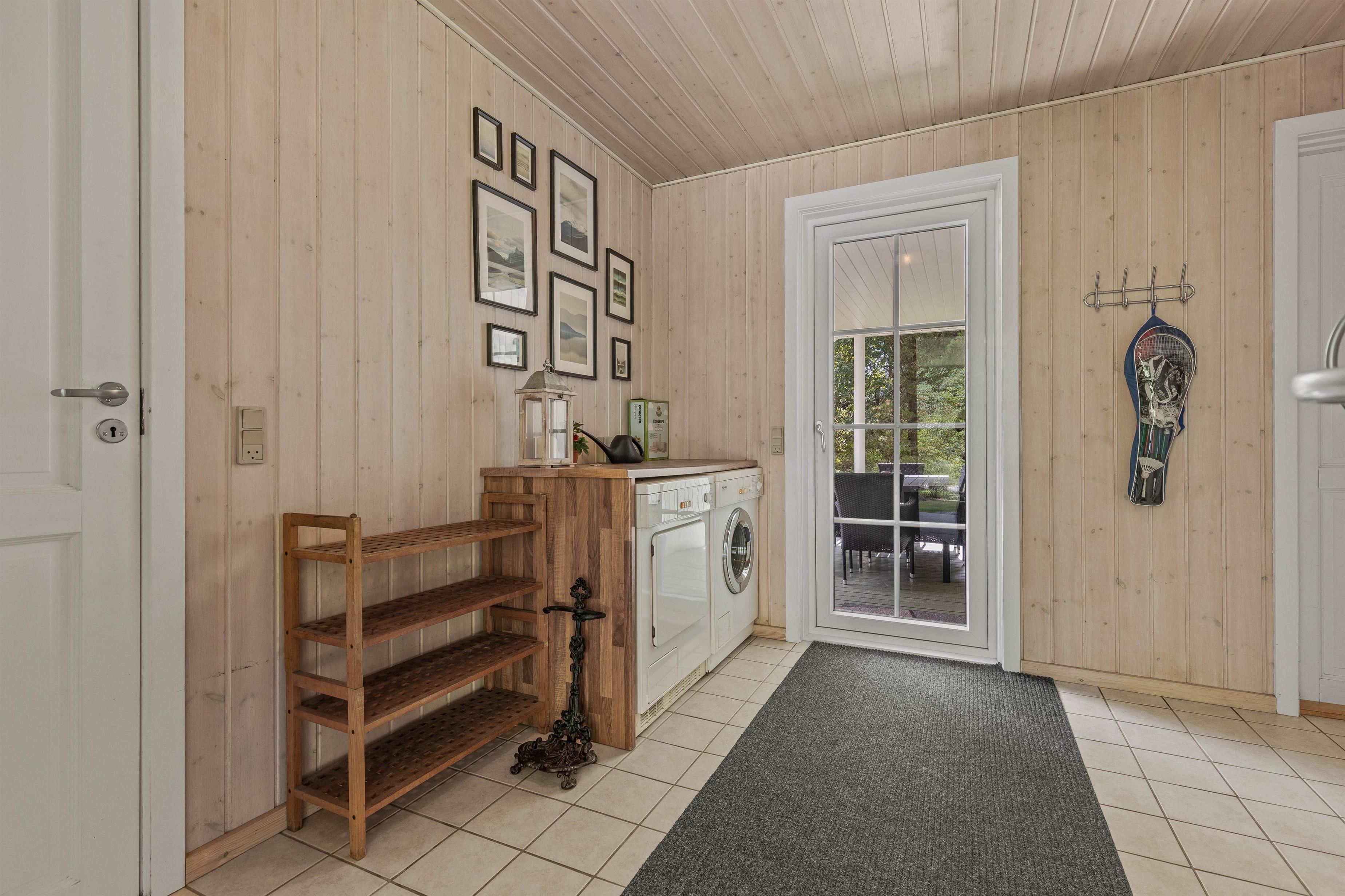 At the heart of this holiday home is the cosy living room, furnished with attention to detail. Here you can relax on the sofa, watch a DVD or enjoy a sociable games evening. Light the wood-burning stove and enjoy its warming comfort, or use the energy-efficient heat pump. The open-plan kitchen with breakfast bar is well-equipped and naturally includes a dishwasher.