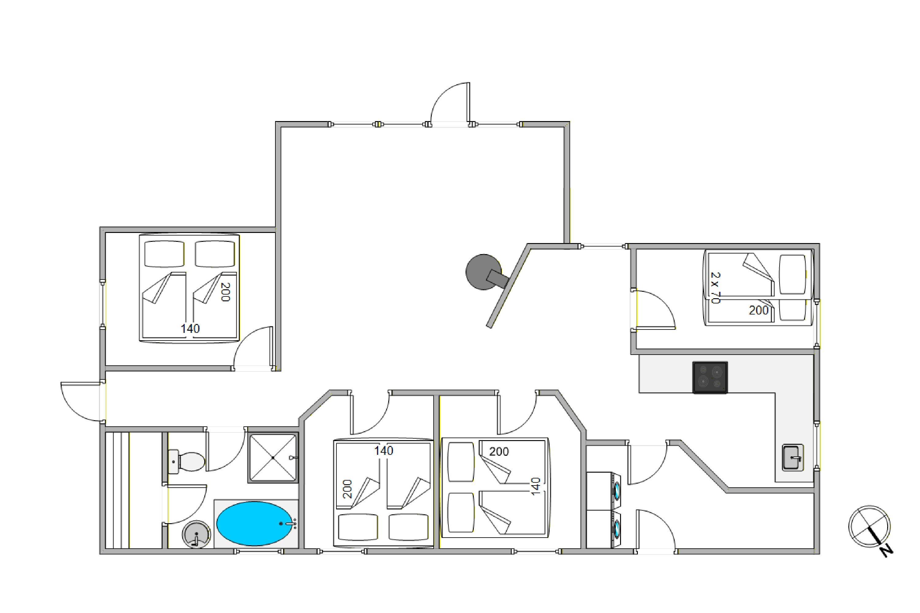 This Blåvand summer house is ideal for a holiday with family or friends. With 4 bedrooms—3 with three-quarter beds (140x200) and 1 with a bunk bed (2x70x200)—it comfortably accommodates around 6 guests, all able to rest and recharge after exciting days.