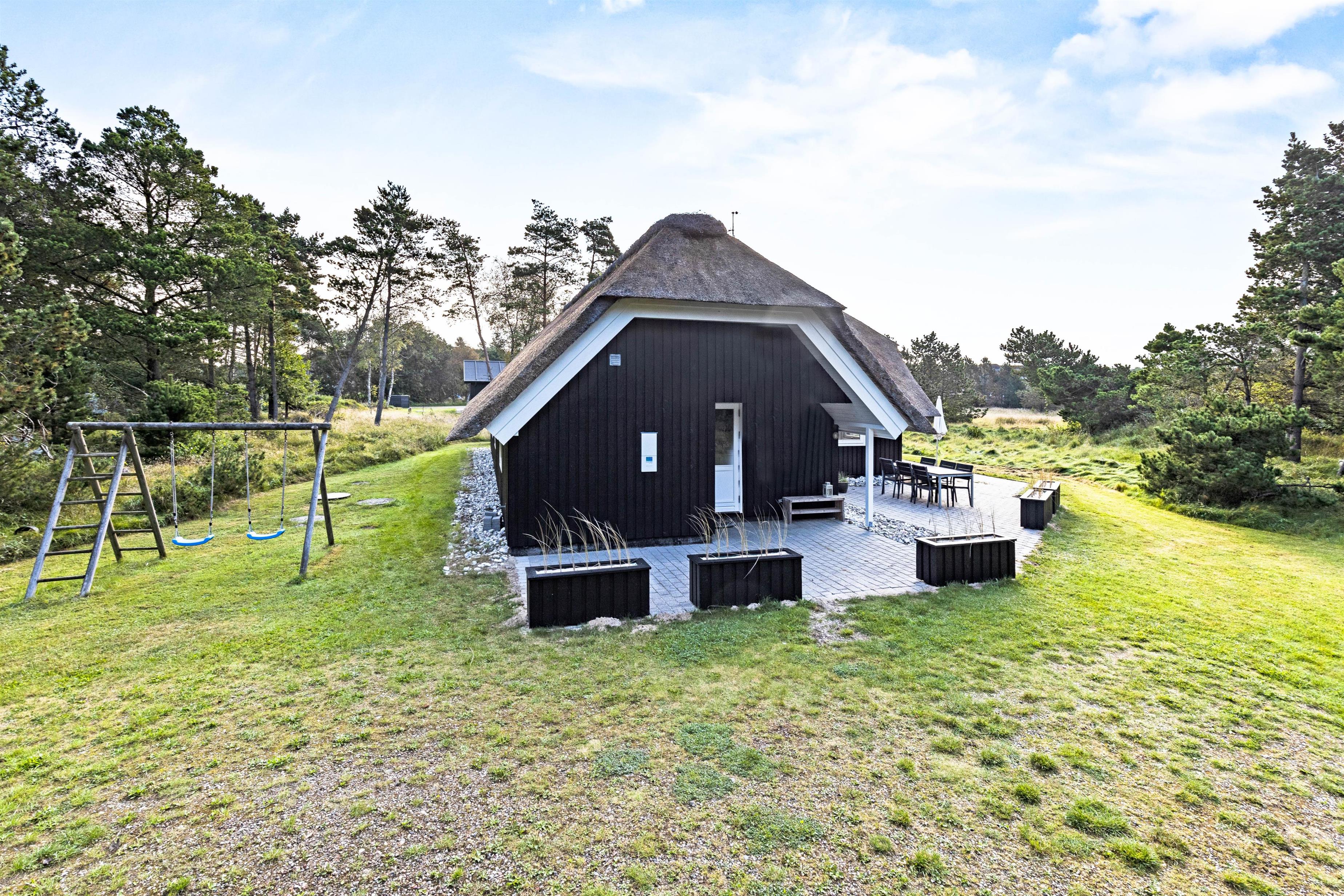 Beautifully screened by trees and bushes at Karl Postsvej 15B, just 700 metres from Blåvand's centre, lies this cosy holiday home nestled under a traditional thatched roof. Families of up to 6 people can look forward to a wonderful and relaxing holiday, complete with sauna and hot tub. The family dog is naturally welcome to join your holiday.