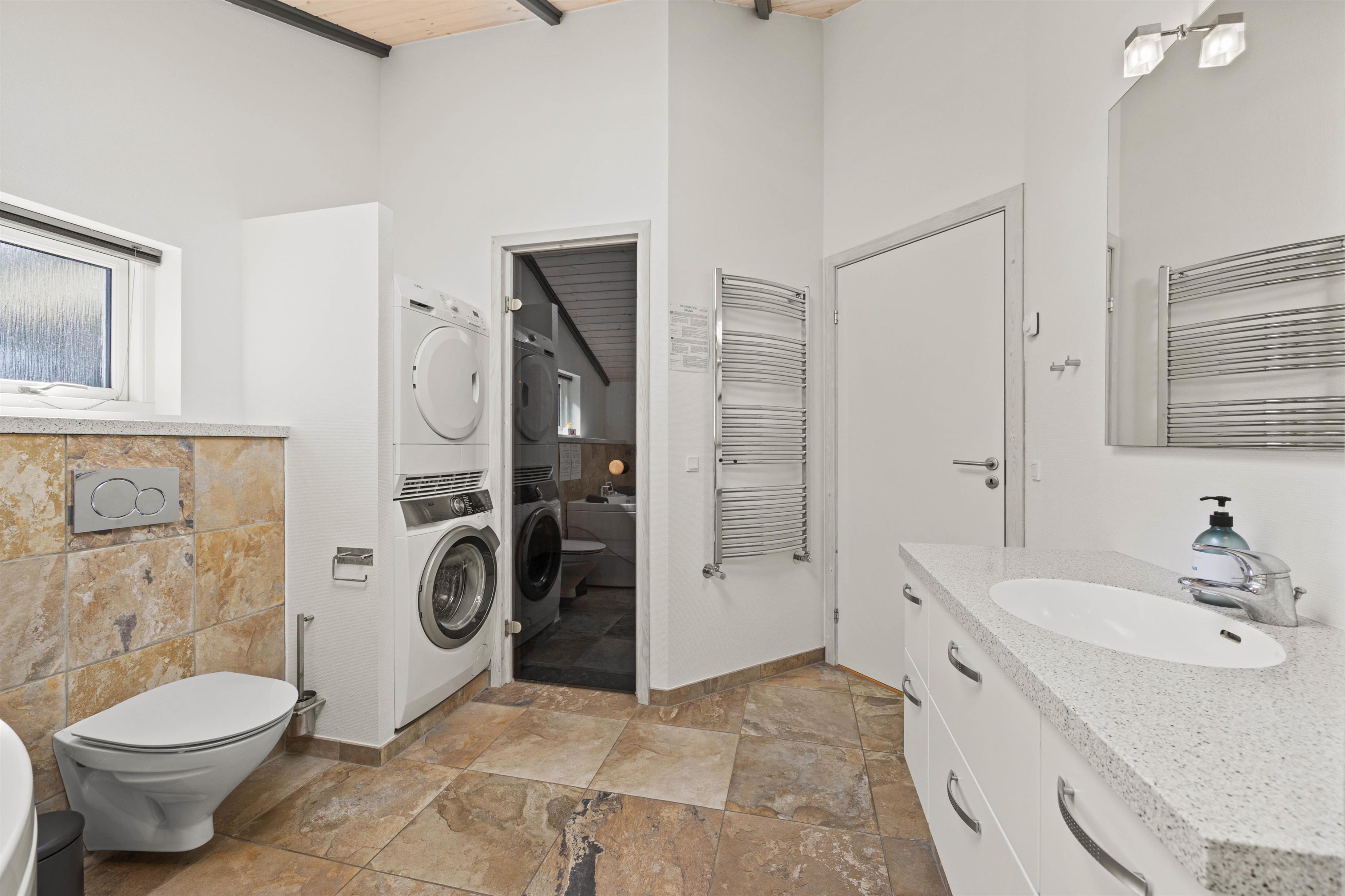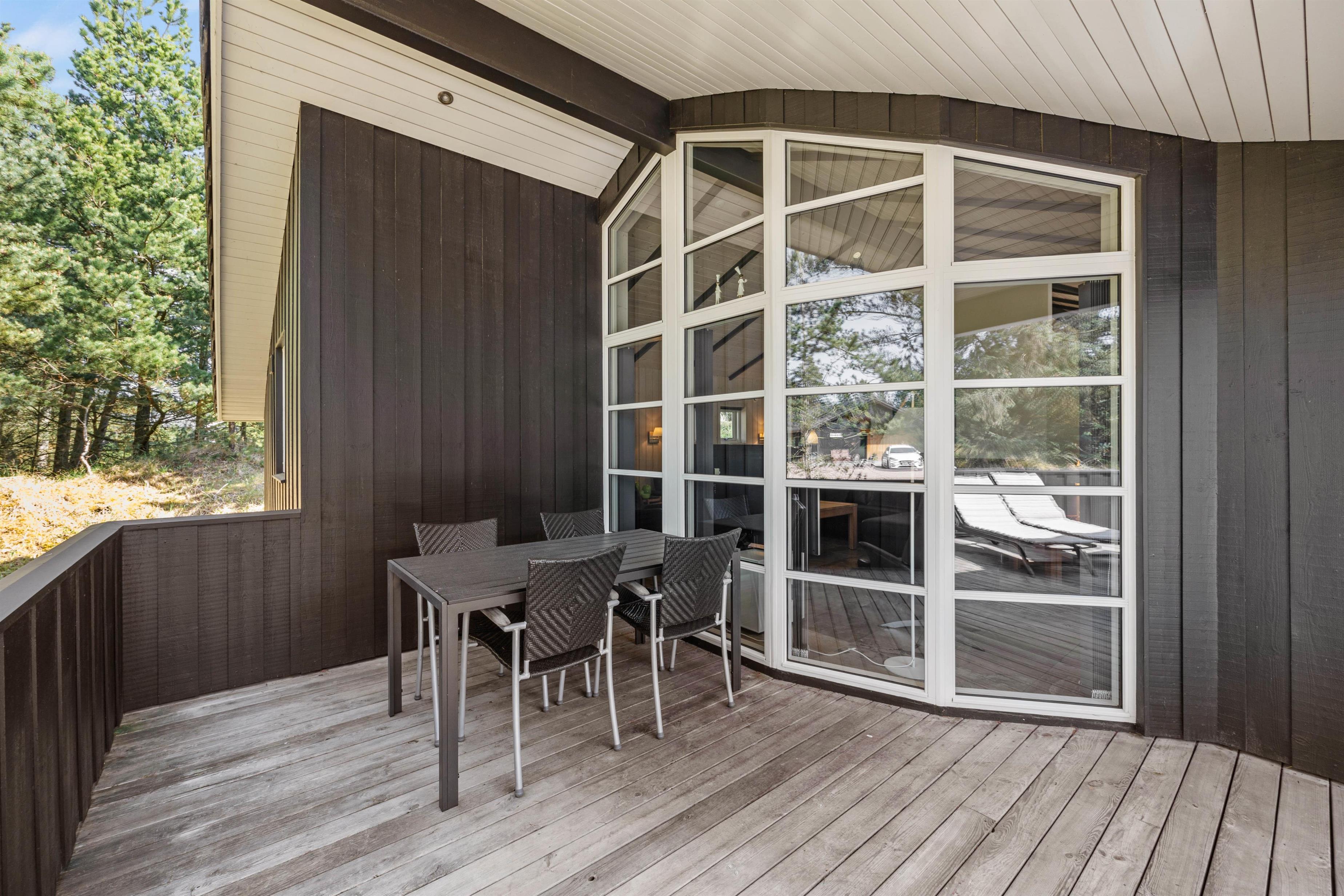 As typical in Danish holiday homes, there's a central living space combining the kitchen, dining area and living room. Wood-panelled walls, large windows and light-coloured walls create a truly welcoming atmosphere. A wood-burning stove provides cosy warmth and a homely ambiance, especially on cooler evenings. The fully equipped kitchen features an induction hob, separate freezer and dishwasher - taking care of the washing up so you can spend more time with your fellow guests.