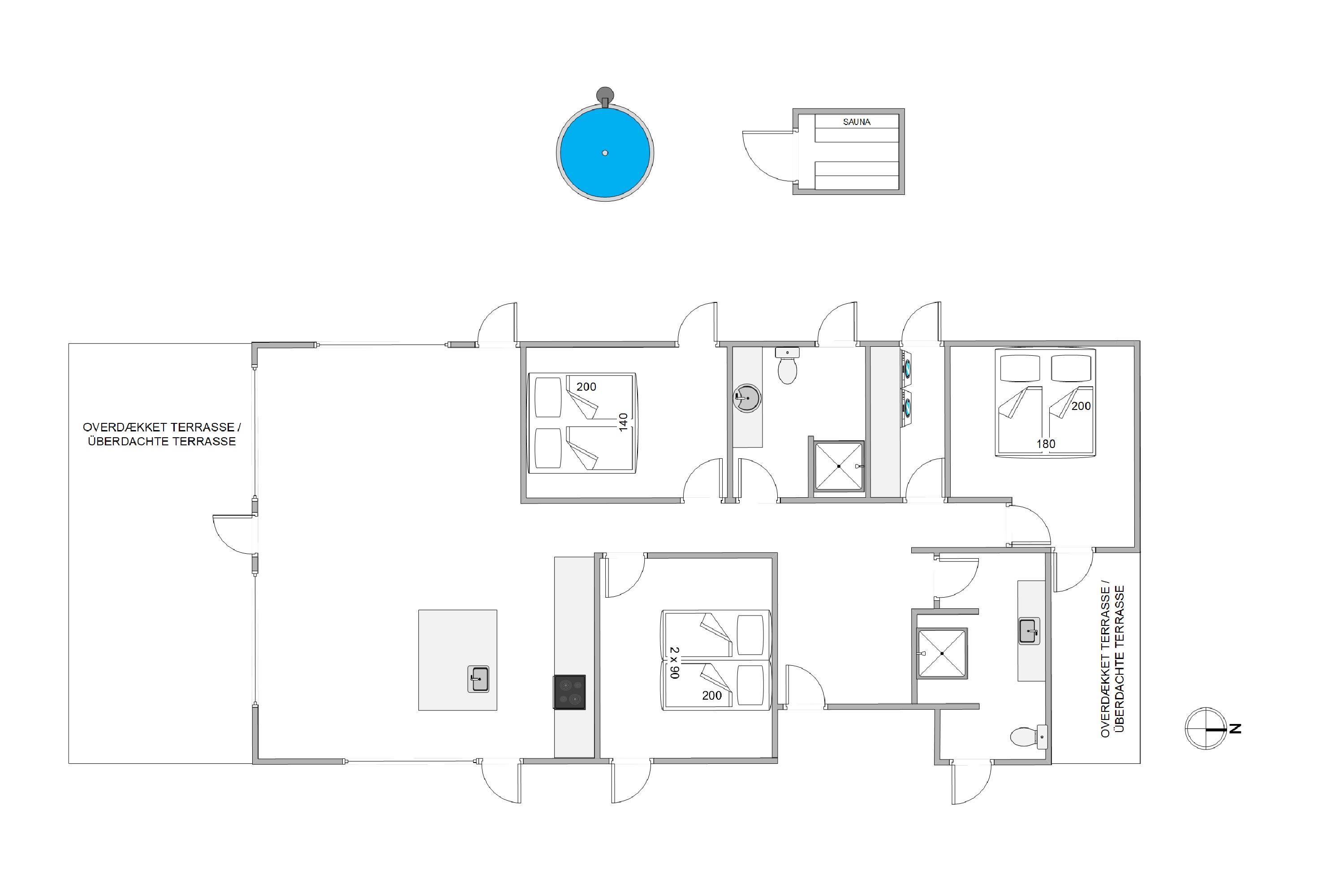 Two bathrooms mean no morning queues. Outside, you'll find a wood-fired hot tub ready for your enjoyment. An outdoor sauna and shower provide luxurious wellness facilities right on your doorstep. Please note that the outdoor shower can be used from 1st April to 31. October only.