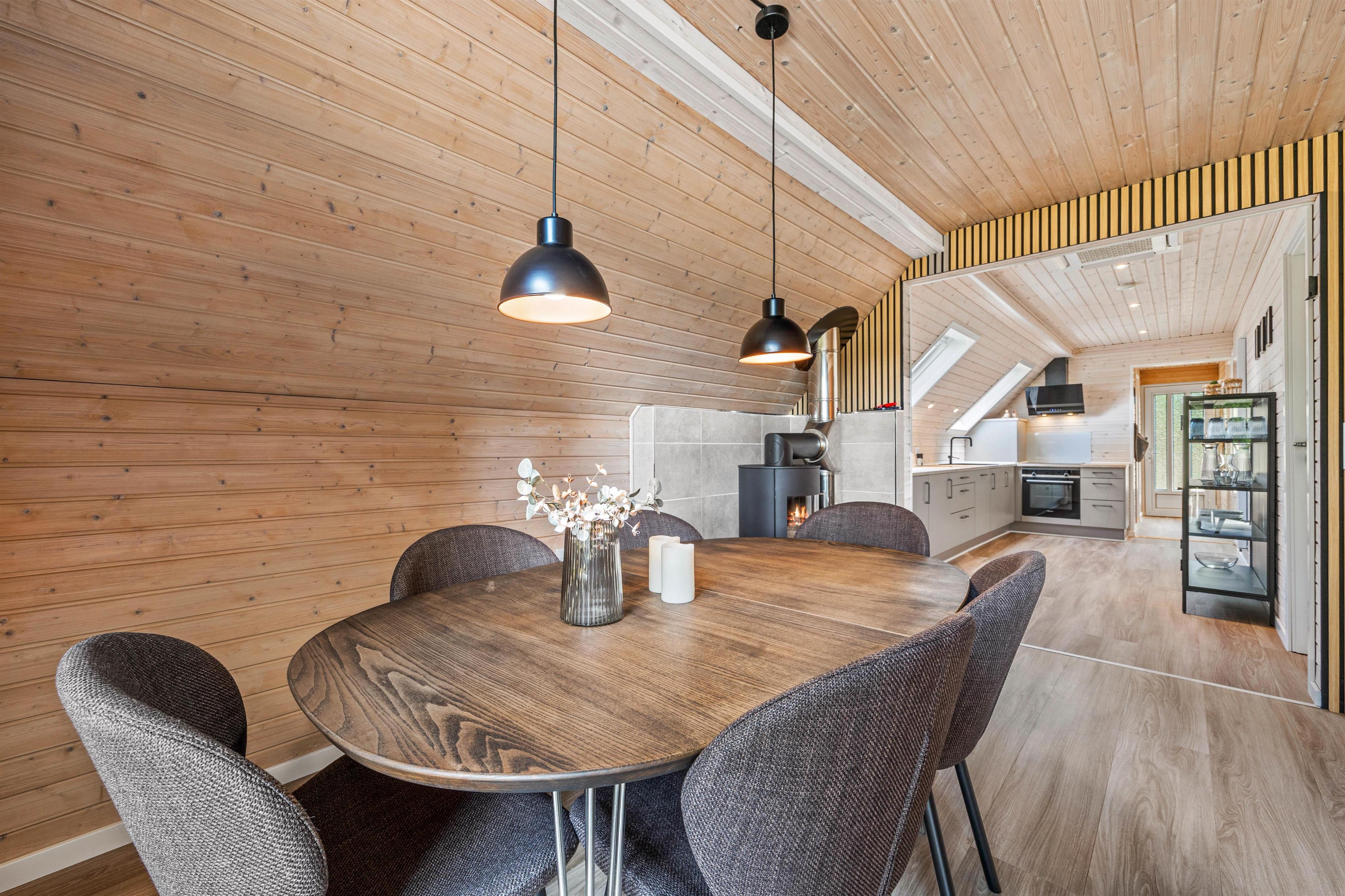 For cosy evenings, light up the wood-burning stove and settle into the comfortable sofas. Enjoy views over the pine woodland, immerse yourself in a good book, or gather for a family film night.