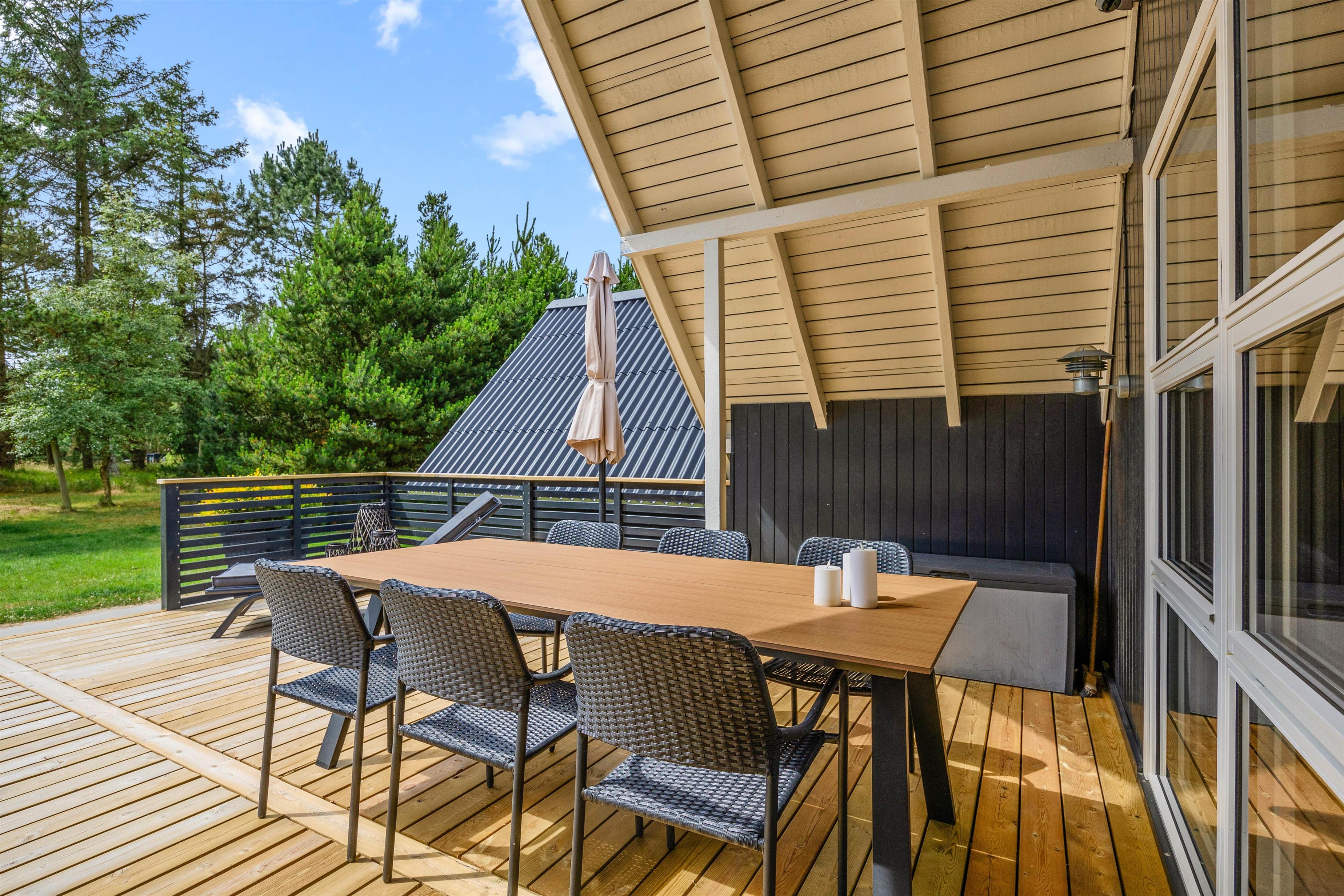 Nature lovers seeking tranquillity will feel right at home here. The partially covered terrace is perfect for soaking up the sunshine and enjoying summer BBQs together. A small pathway leads up the dune, offering stunning views over the Blåvand holiday region and Kallesmærsk Heath. The holiday home's location is ideal for extensive walks with your dogs, with a hiking trail leading directly from the holiday home into the vast Kallesmærsk Heath nature reserve.