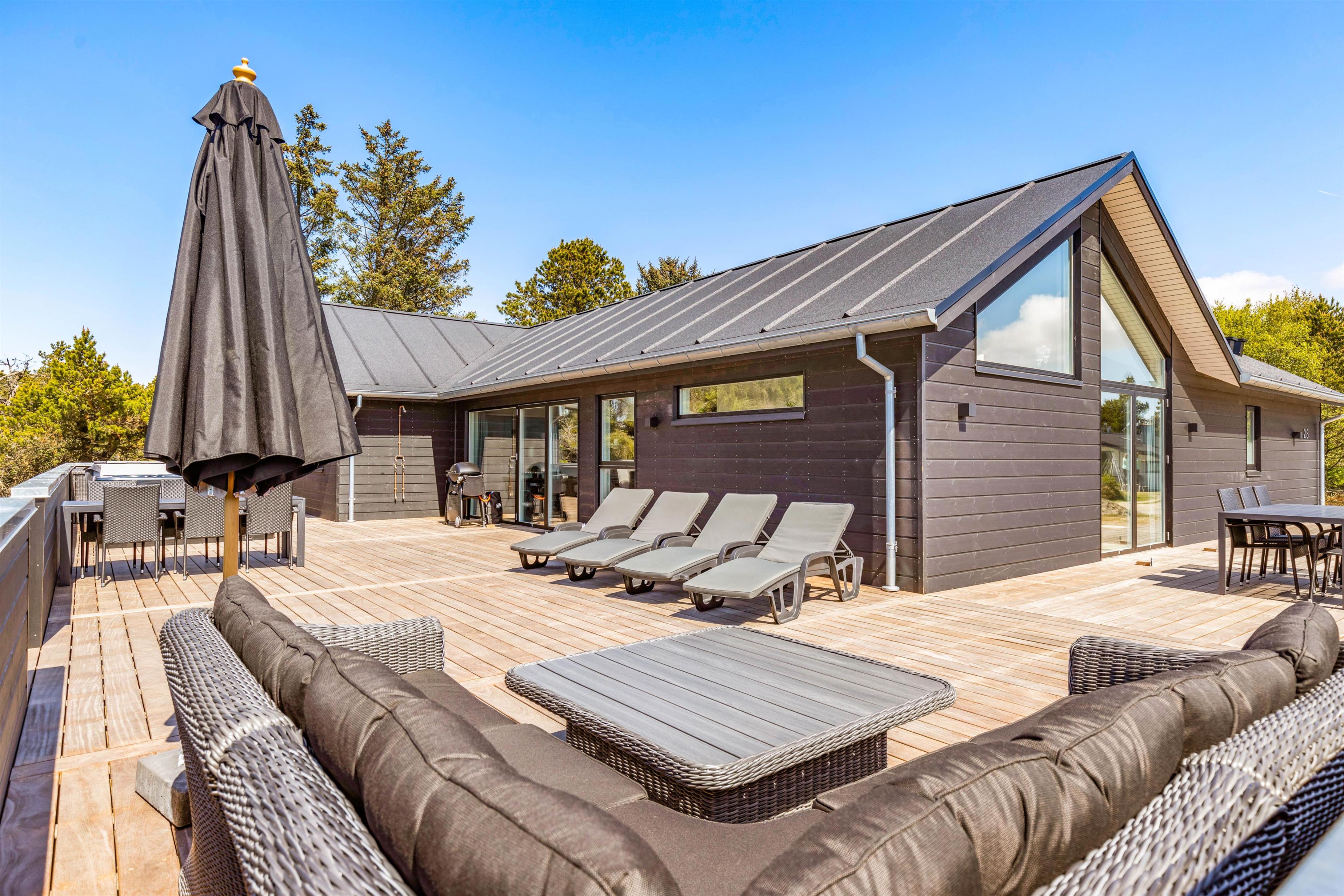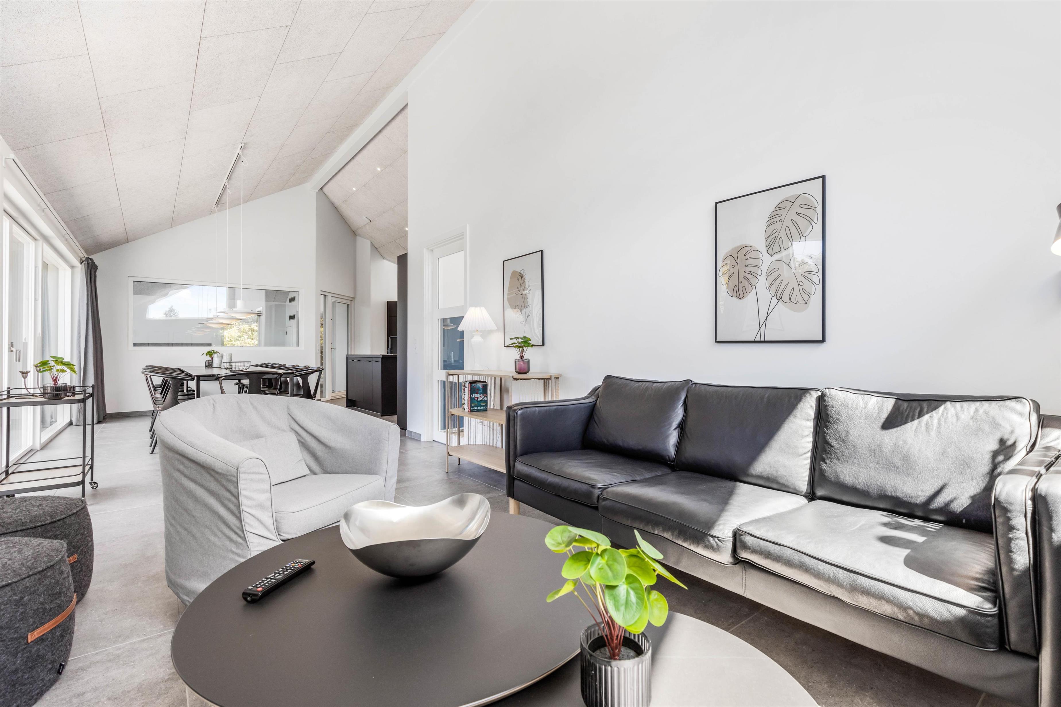 The modern Nordic interior style will captivate you as soon as you enter this 215-square-metre holiday home, instantly putting you in a cheerful holiday mood.