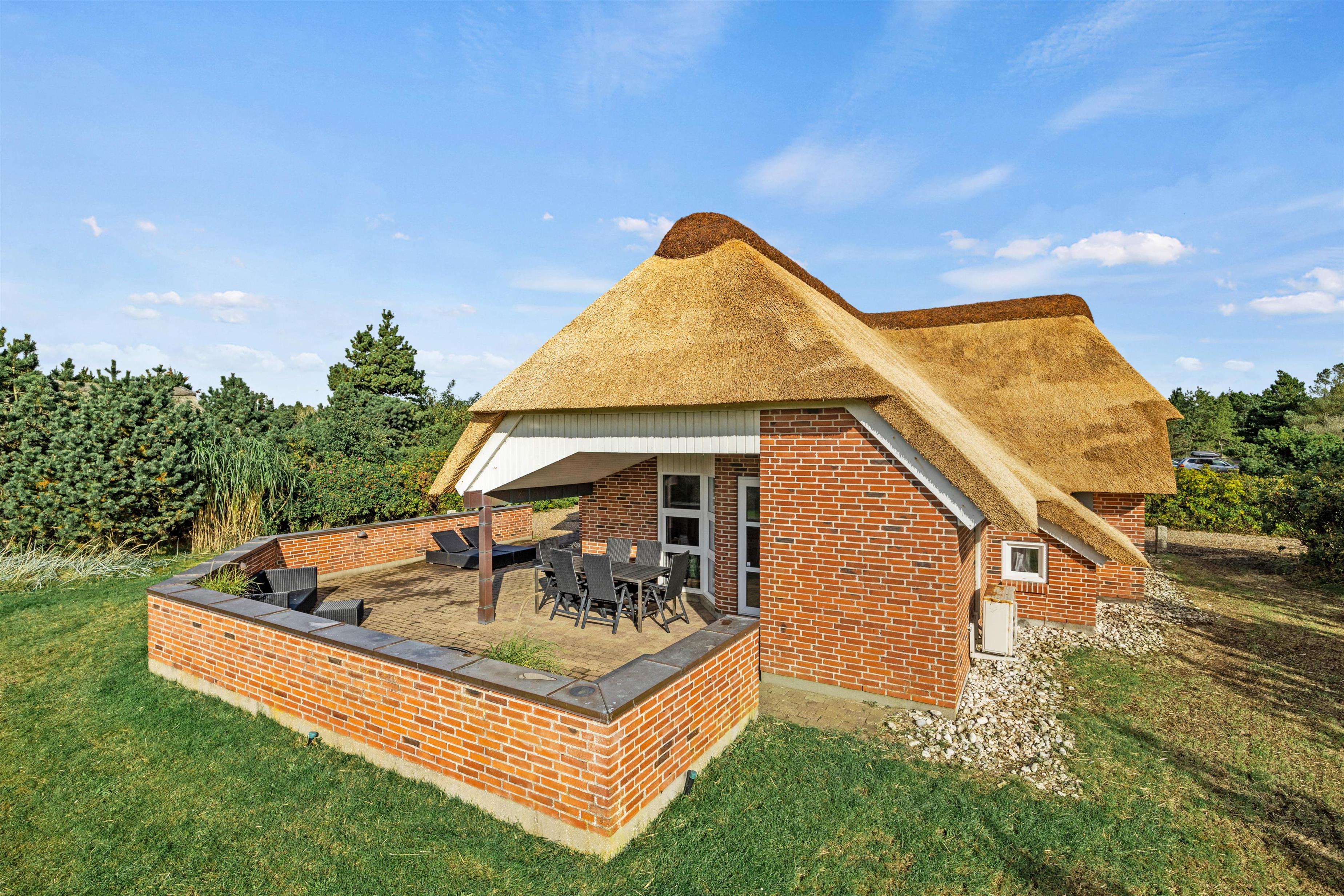 This lovely thatched holiday home is located at Im Kollemarken 52, just a short distance from the beach and Blåvand centre. Stylishly and comfortably furnished, the holiday home offers plenty of space for 6 people and your dog. Everyone can find their own cosy corner for relaxation, with additional wellness features including a sauna and whirlpool. An electric car charging point is available at the holiday home.