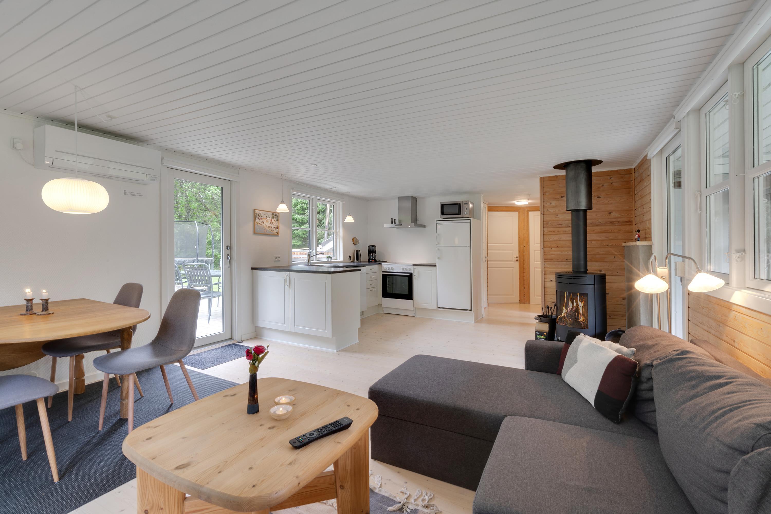 This holiday home at Bjergbovej 20 in Blåvand was renovated in 2020. All rooms are bright and welcoming, with stylish yet cosy furnishings. The living room, dining area and kitchen form an open-plan space. Spend your evenings relaxing on the sofa, enjoying a glass of wine while listening to the crackling flames of the wood-burning stove - perfect for a peaceful holiday atmosphere.
