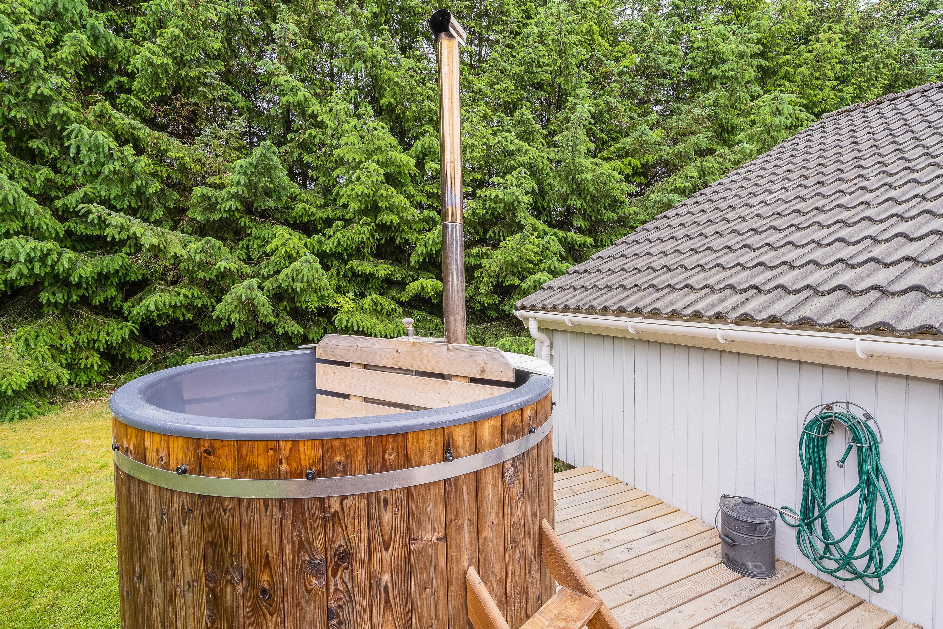 The garden, spanning more than 1,700 square metres, offers abundant space for both play and relaxation. Young guests will enjoy the swing, sandpit and football goals on the well-maintained lawn. The highlight is the outdoor hot tub on the terrace - where else can you stargaze from the comfort of a warm bath, perhaps even spotting shooting stars?