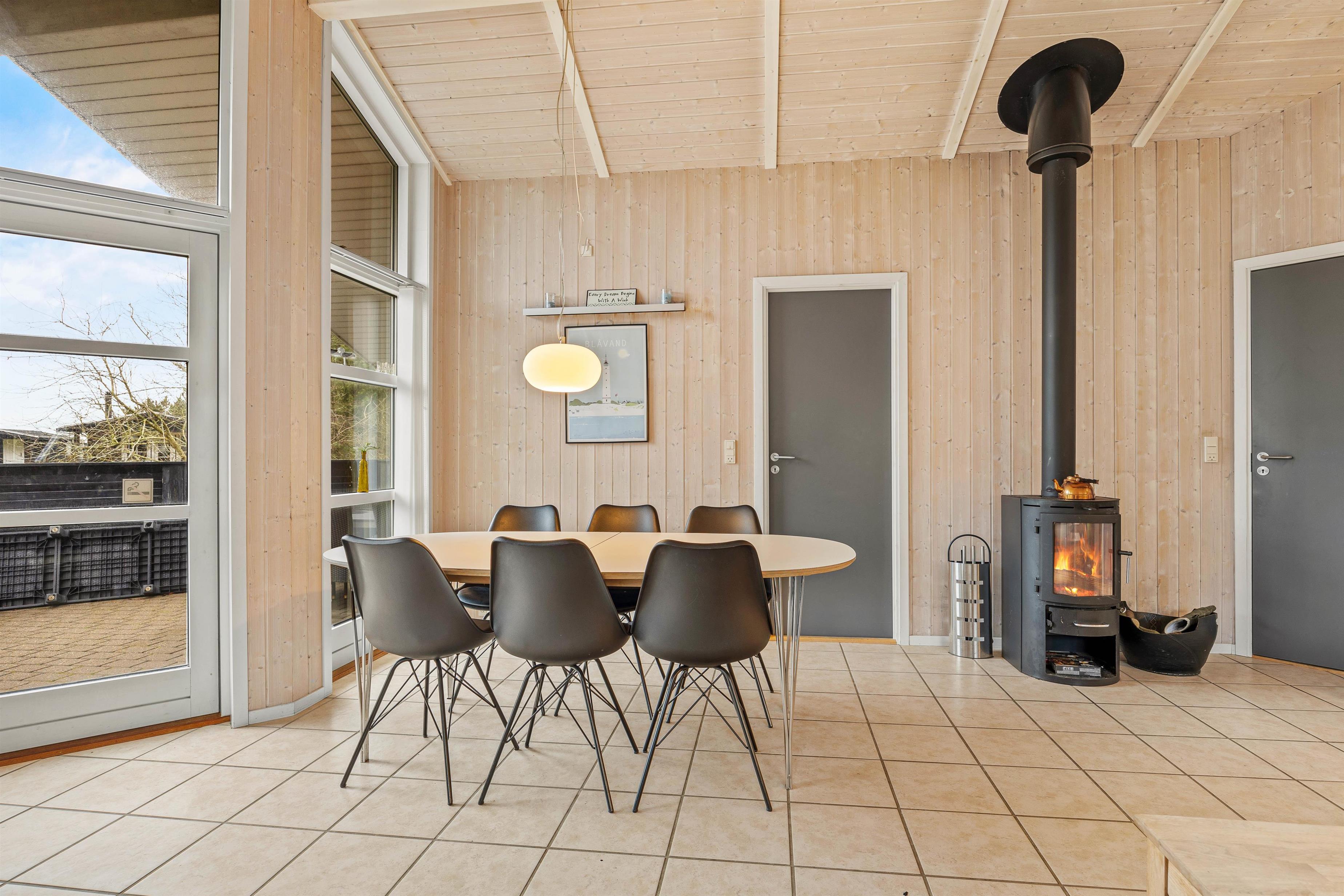 The open-plan living area, with adjoining dining space and kitchen, is where you'll spend time together cooking, playing games and having fun. You can also curl up in the armchairs with a Scandinavian crime novel, listening to the crackling of the fire in the wood-burning stove.