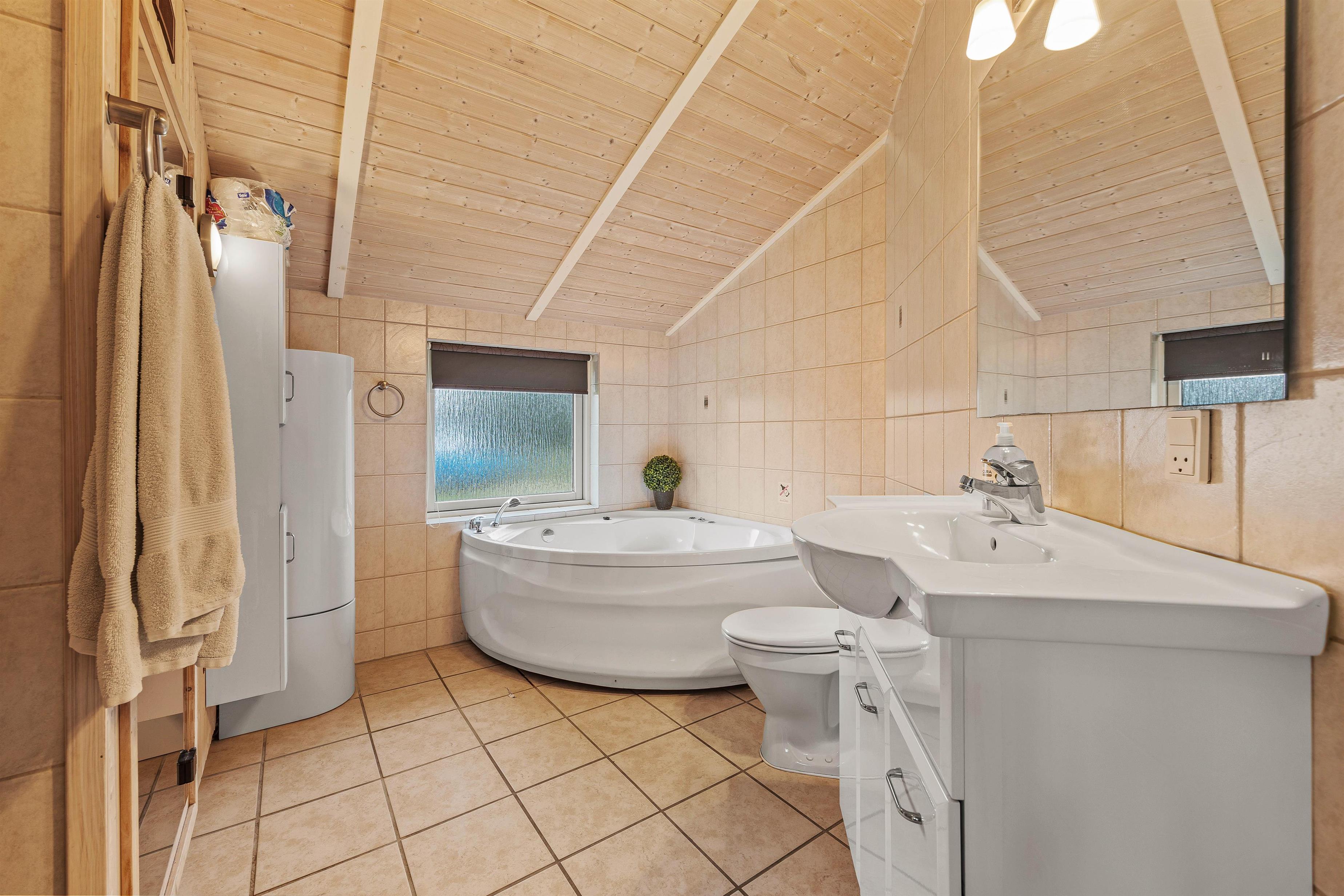The holiday home has three bedrooms in total, two with double beds and one with twin beds. Here you can enjoy a lie-in before starting your holiday day at a relaxed pace. The spacious bathroom features underfloor heating, a shower enclosure, sauna and whirlpool. Boost your wellness with a proper sweat in the sauna, followed by relaxation in the warm, bubbling waters of the whirlpool.