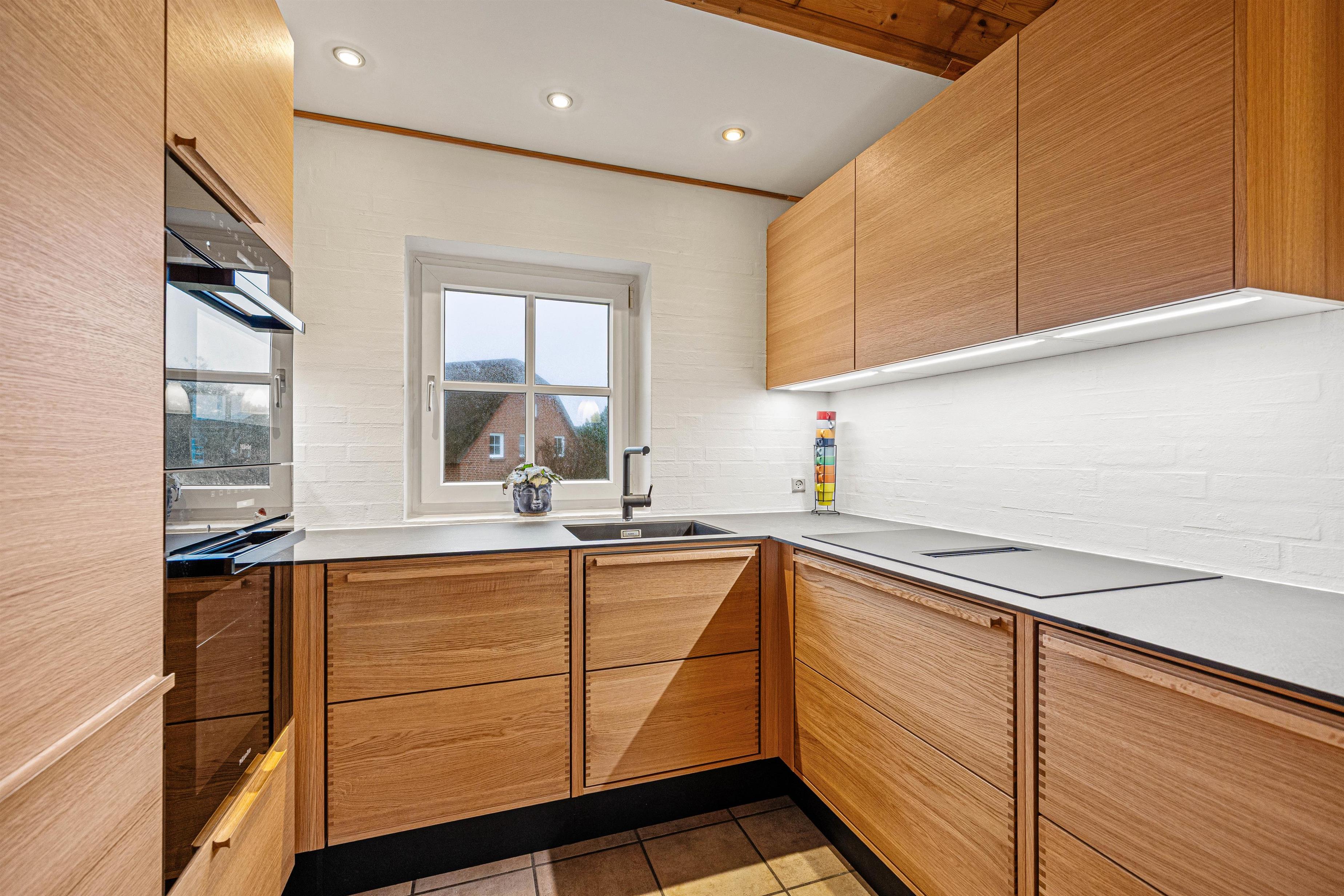 The open-plan living area provides a cosy space for holiday gatherings. During your Danish holiday, with no schedules or obligations to worry about, you'll have plenty of time to spend together. Enjoy games nights, collective cooking experiences in the open-plan kitchen, or simply relax in front of the wood-burning stove, listening to the crackling fire. Pure relaxation at its finest.