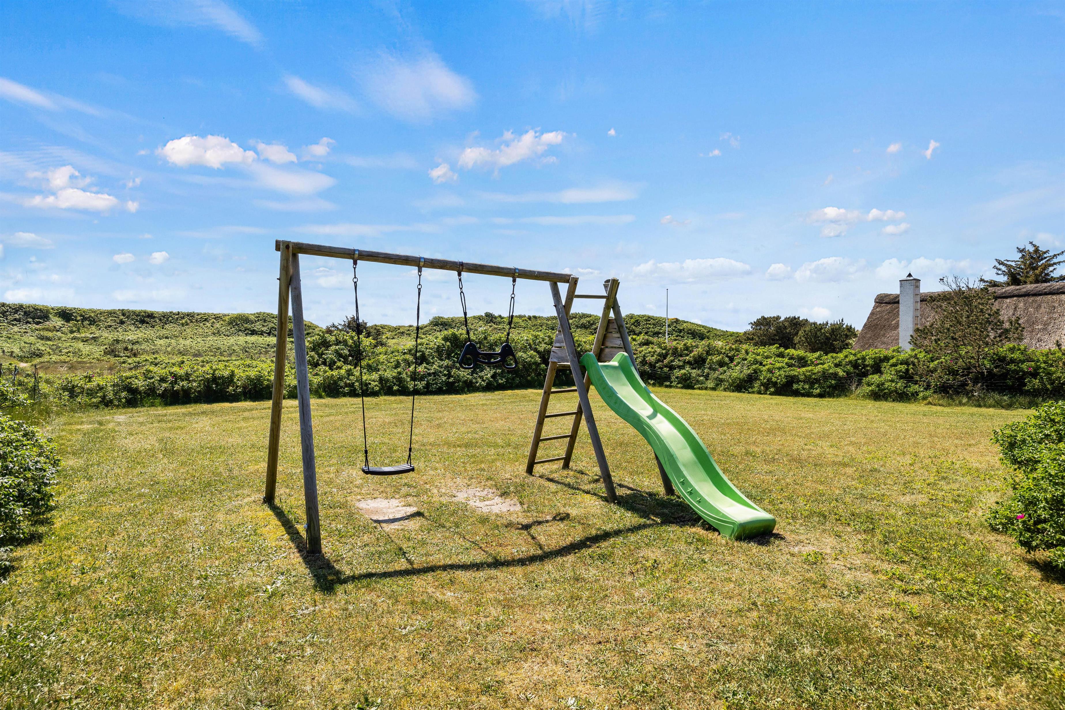 The outdoor areas offer multiple options for enjoying your holiday to the fullest. Whether you choose to relax on the open, screened, or covered terrace - the choice is yours. A barbecue is also available for delicious outdoor dining. Children can play to their heart's content on the 2,502-square-metre grounds and enjoy the swing set. Cool off in the 15-square-metre swimming pool before relaxing in the lounge area to enjoy the picturesque views.