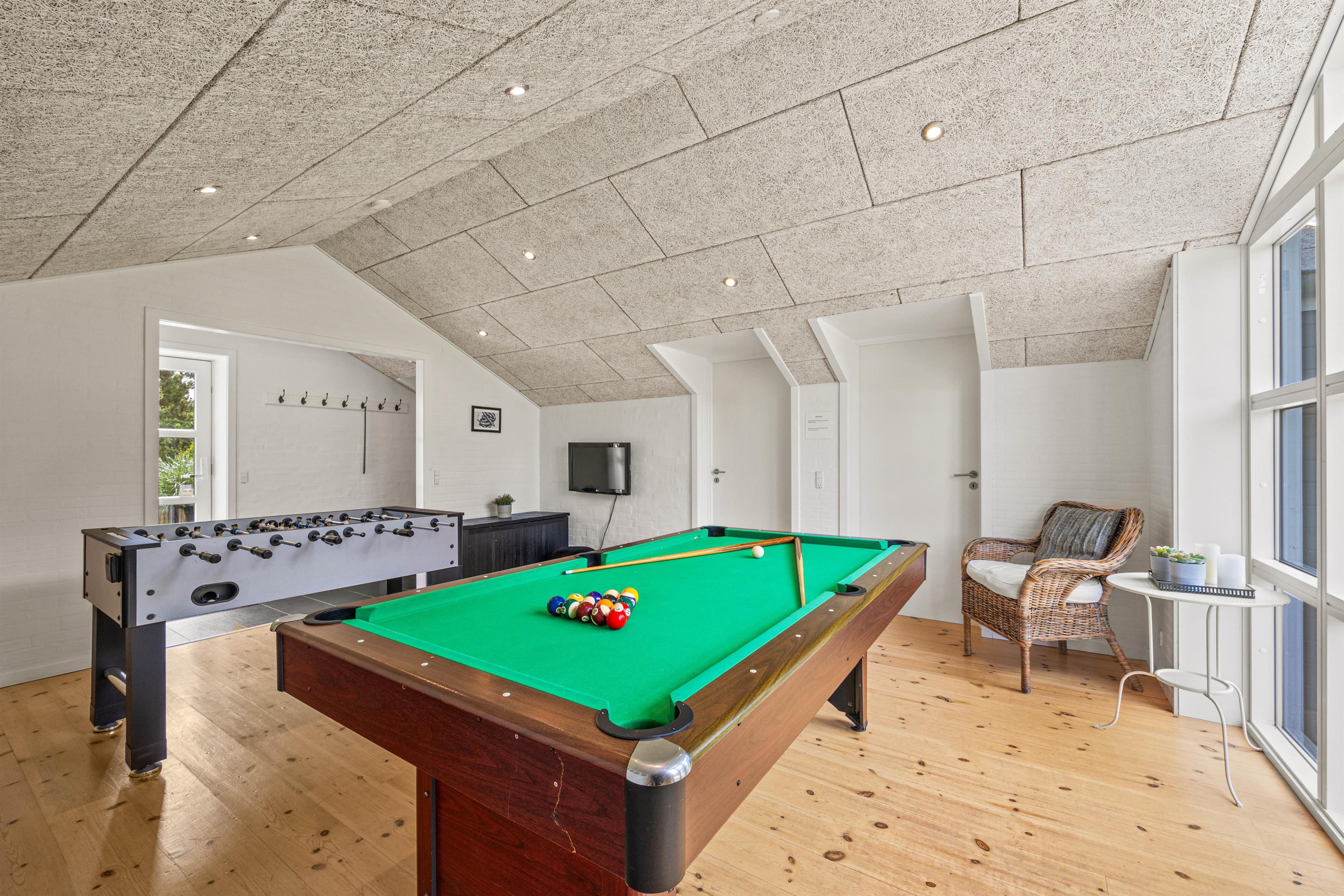 Beyond these amenities, the holiday home offers numerous opportunities for entertainment and active recreation. The spacious living area is perfect for family film nights, while the games room promises exciting tournaments around the pool table and table football.