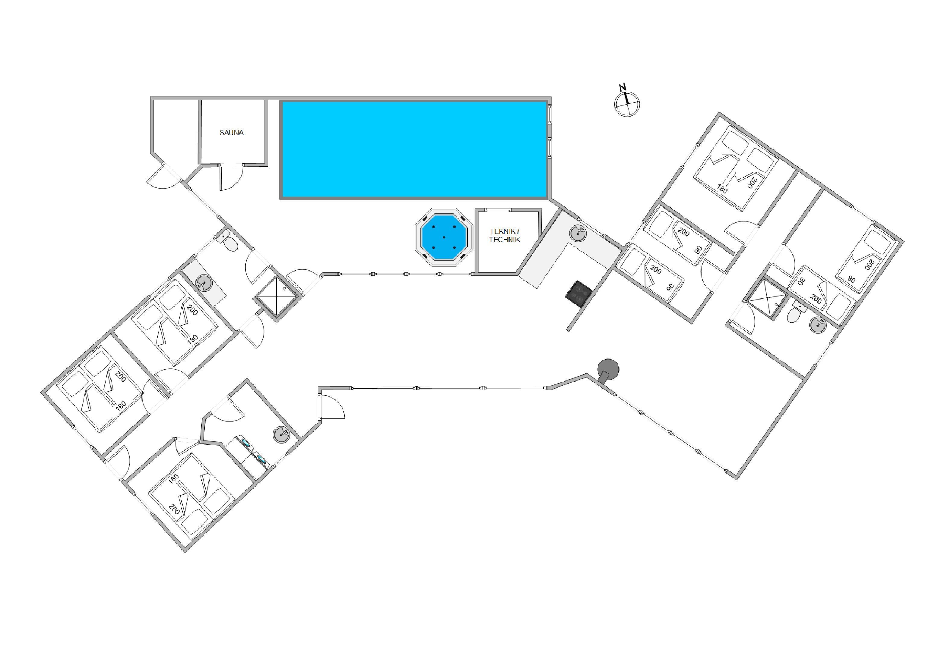 This holiday home is comparable to a wellness oasis. The 30-square-metre indoor pool with counter-current swimming system will surely help make this holiday unforgettable. Additionally, there's a whirlpool and sauna. The holiday home features six bedrooms in total: four with double beds and two with twin beds, ensuring everyone finds their perfect sleeping arrangement. Once you've chosen your rooms, there's plenty to explore both inside and out.