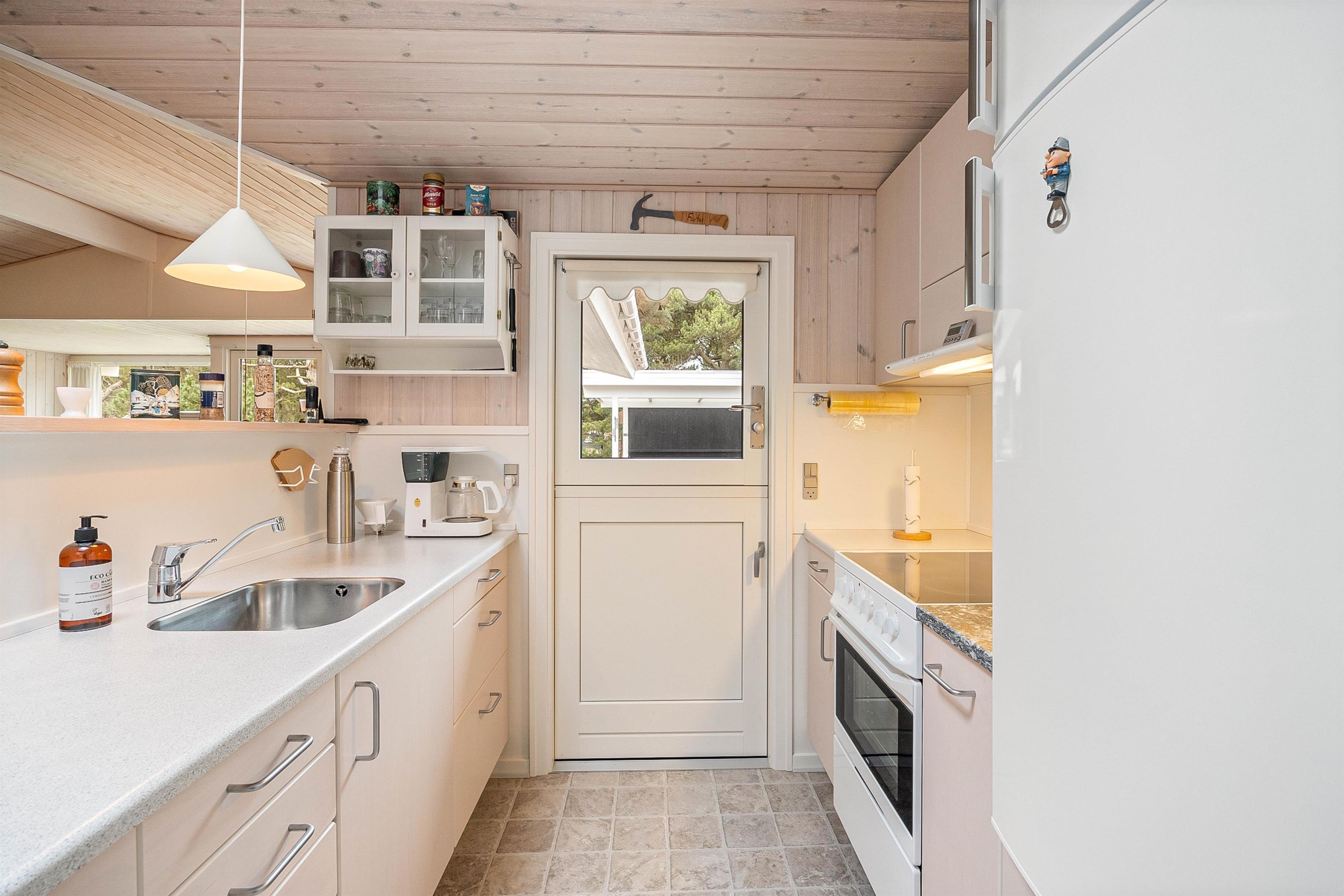 Upon entering the holiday home at Sønder-Vasevej 11, you'll be welcomed by an inviting and cosy atmosphere that instantly makes you feel at home. The high-pitched ceilings and light wooden walls create a wonderfully comfortable environment.