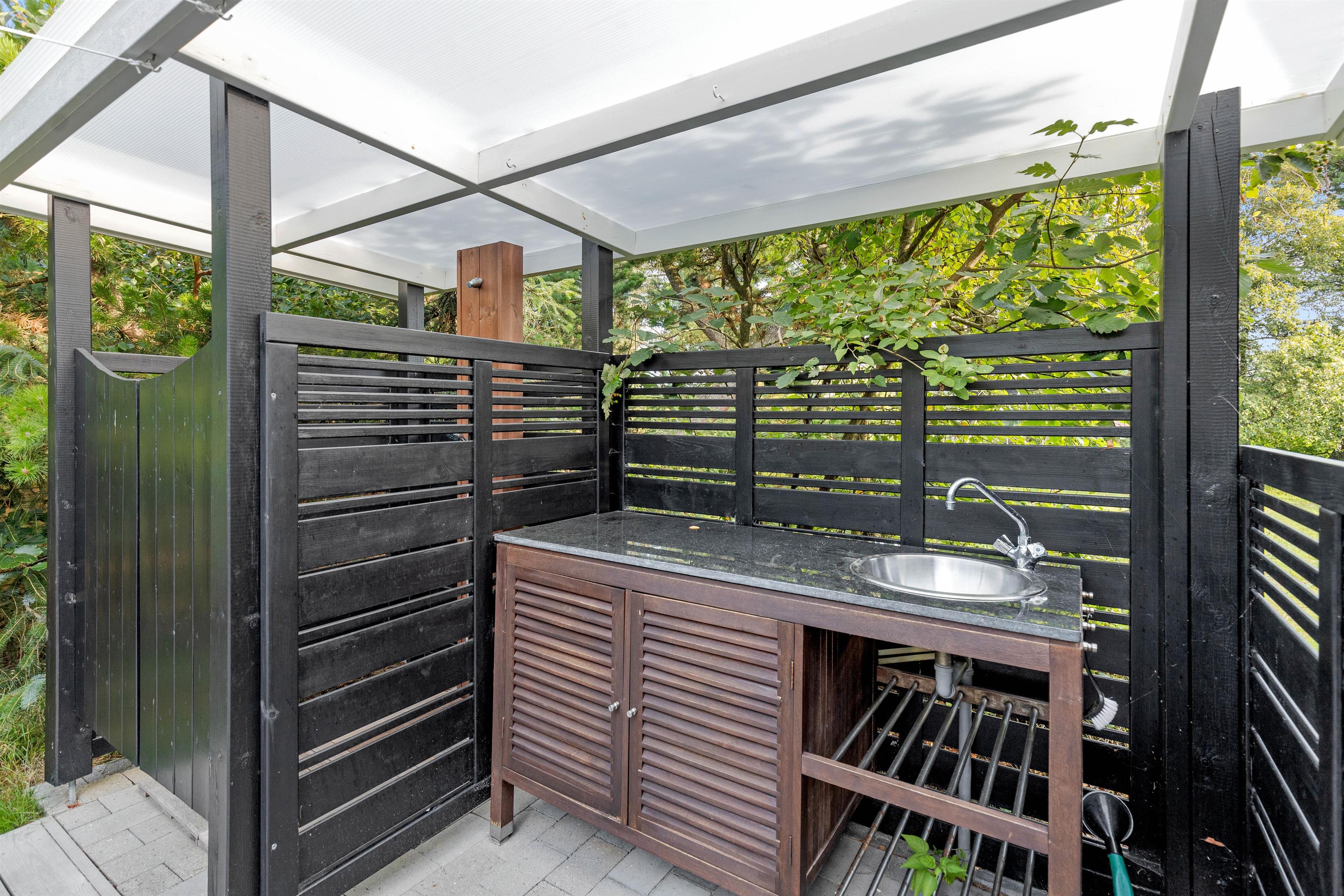 Stunning terrace with outdoor kitchen and shower