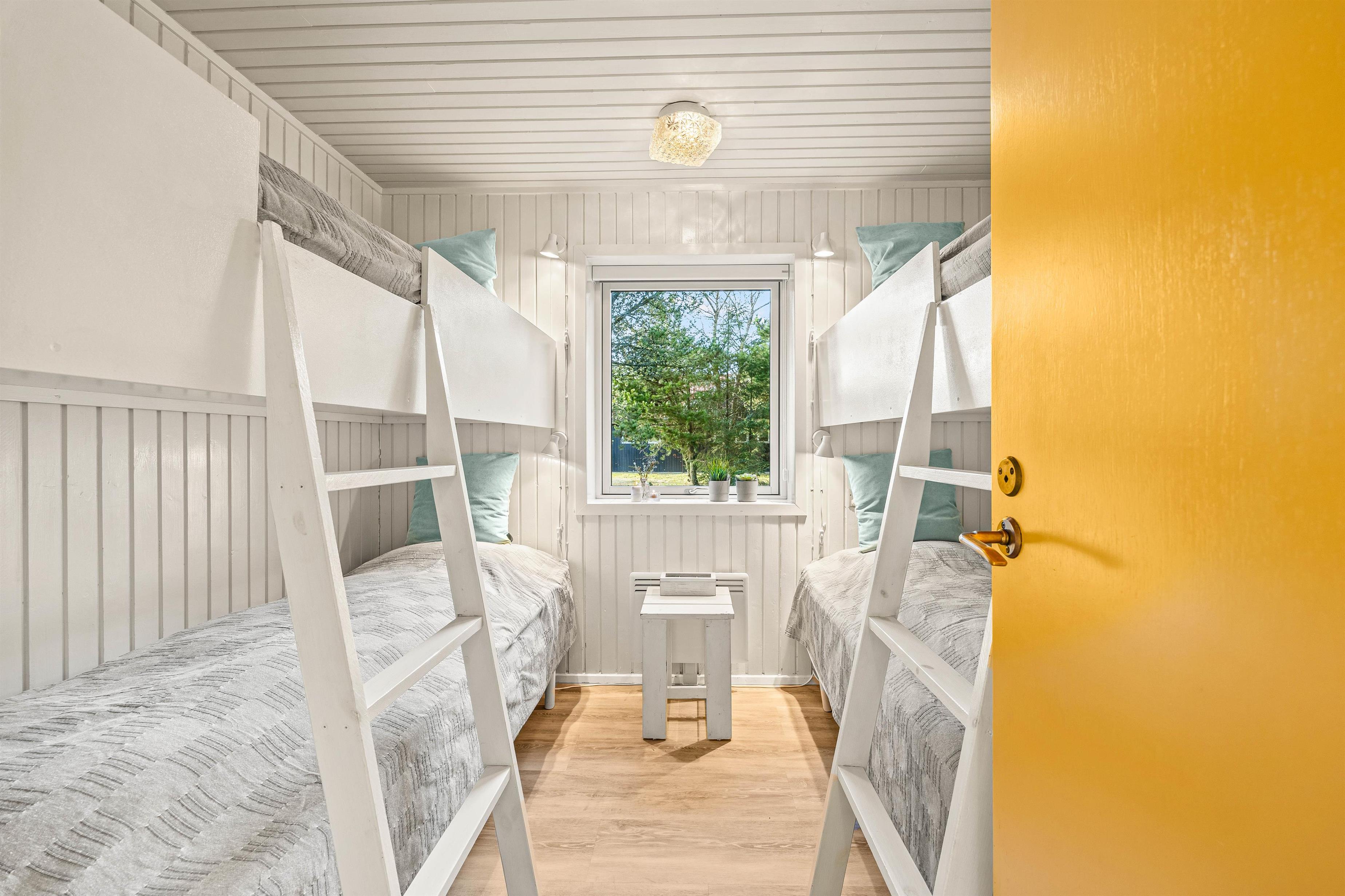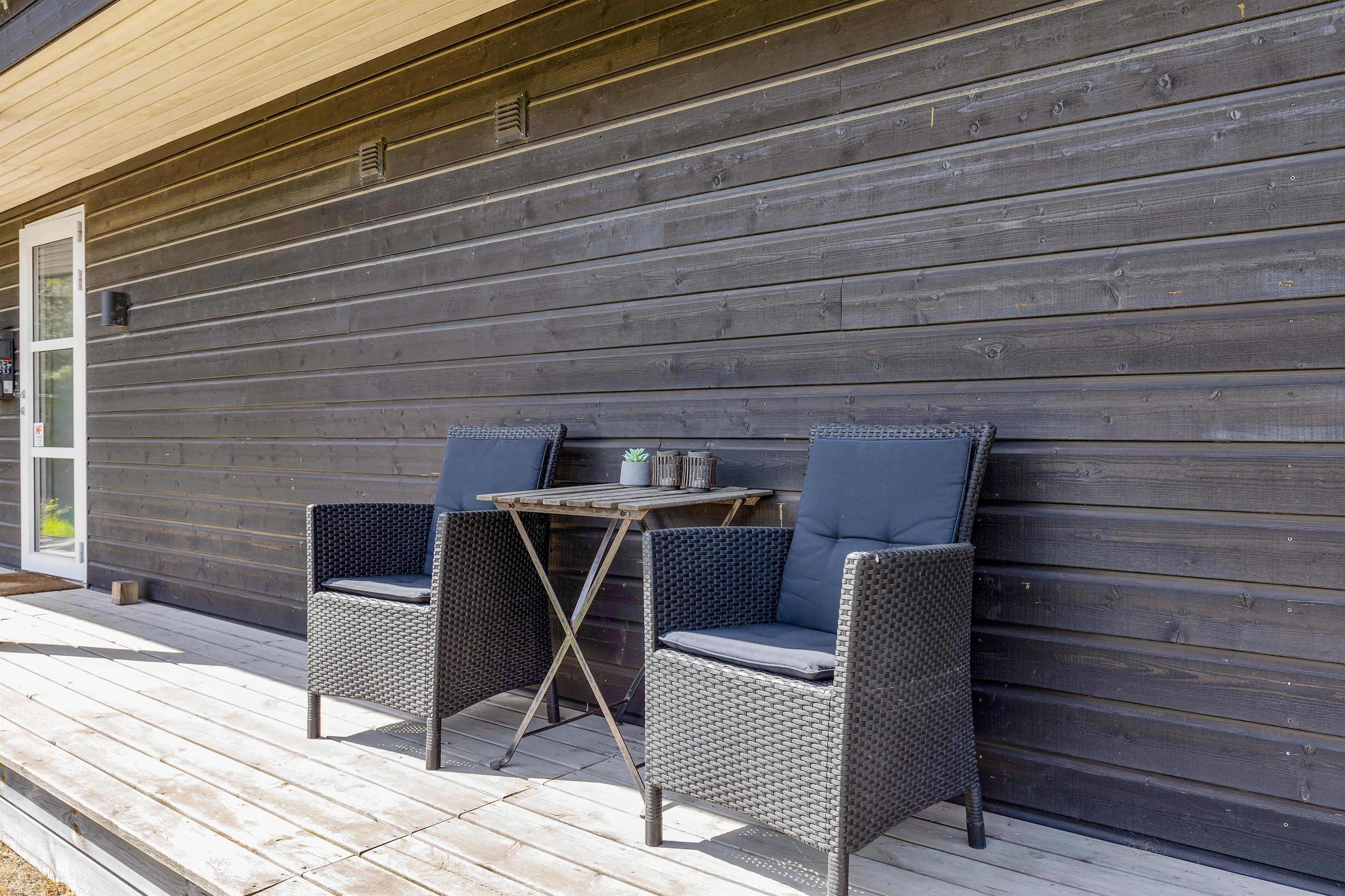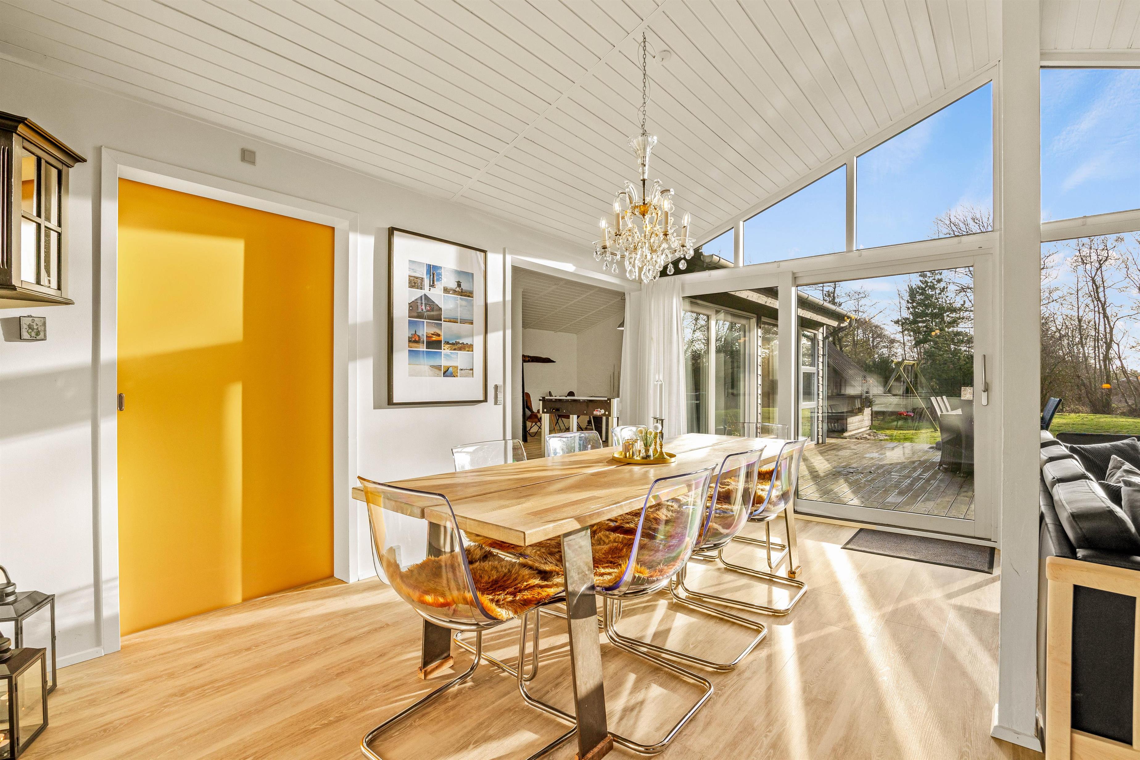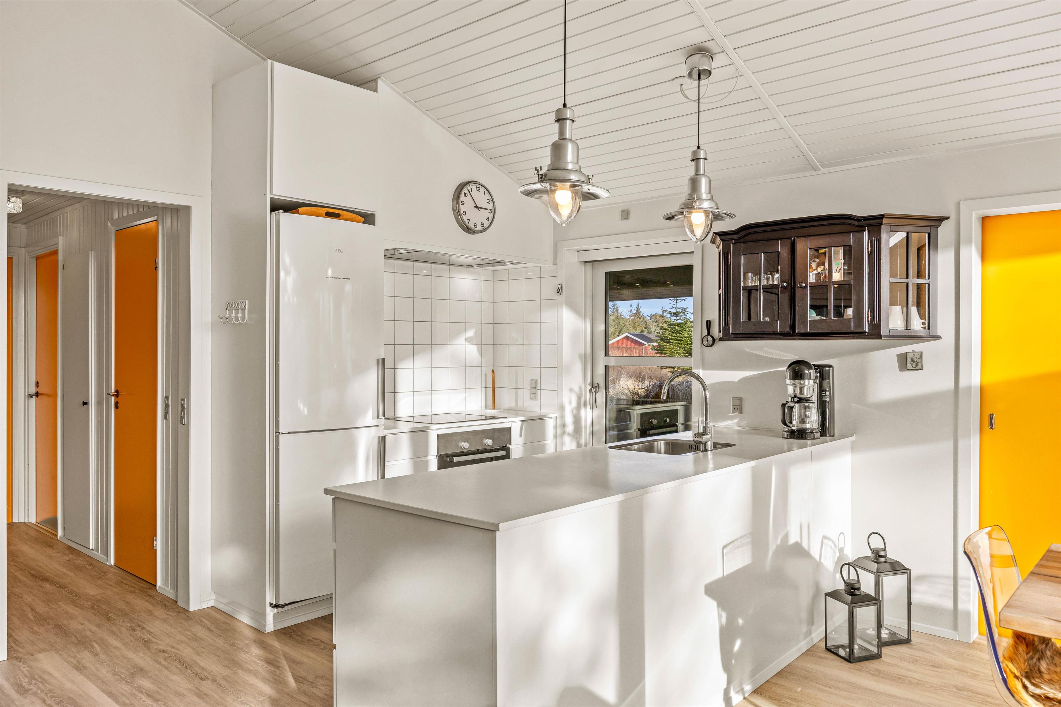 You can enjoy Scandinavian cosiness and an open atmosphere in the living area with its wood-burning stove and open-plan kitchen. You'll spend many harmonious hours cooking, playing games and relaxing while enjoying stunning views through the large window front.