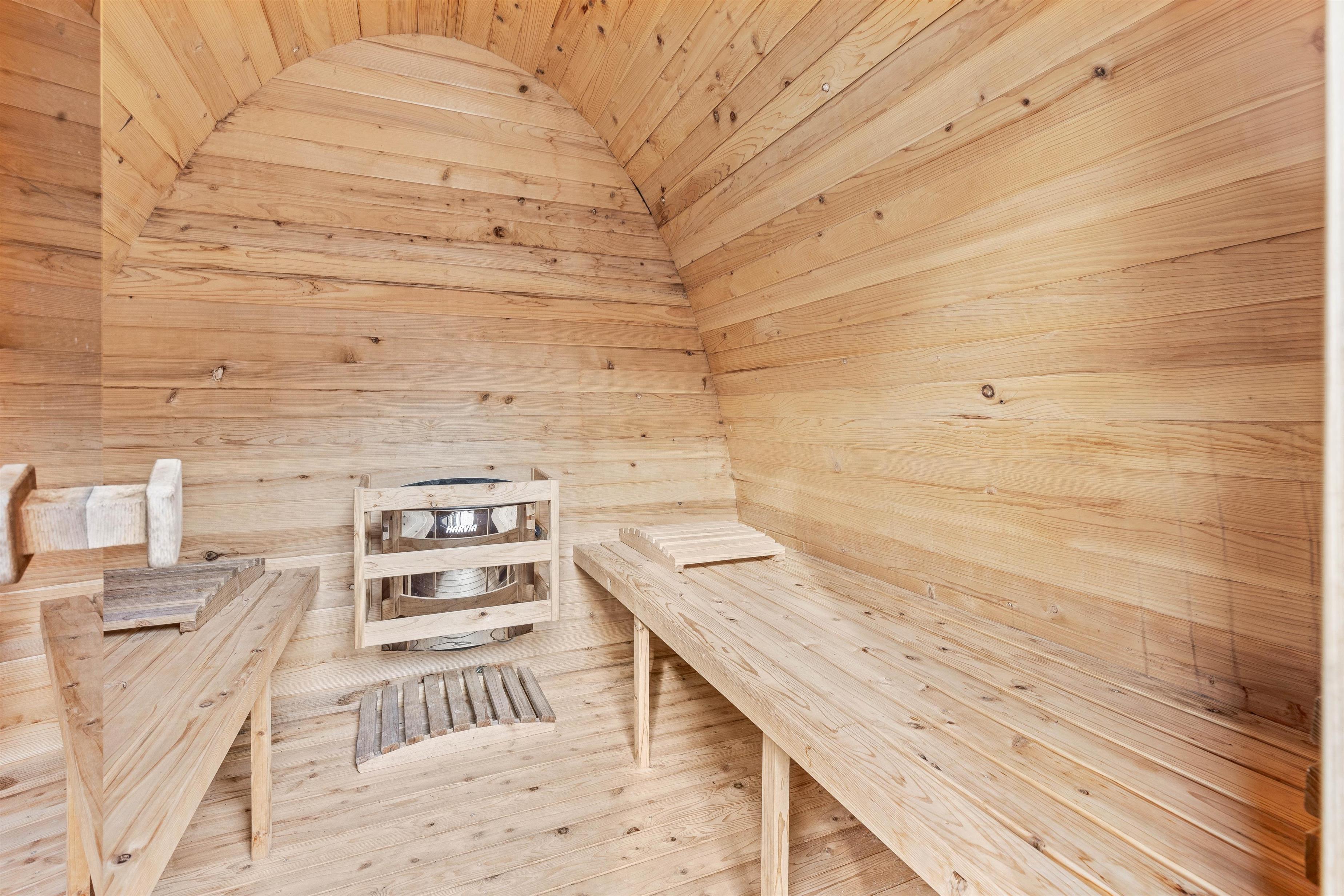 Superb outdoor area with sauna, hot tub and BBQ lodge