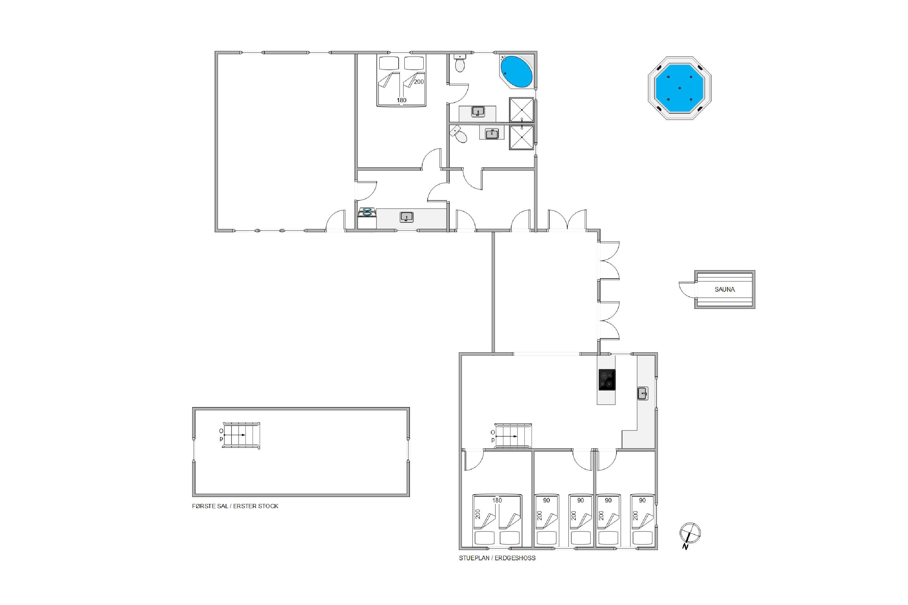 1. soverom / sengestørrelser180x200 høyde